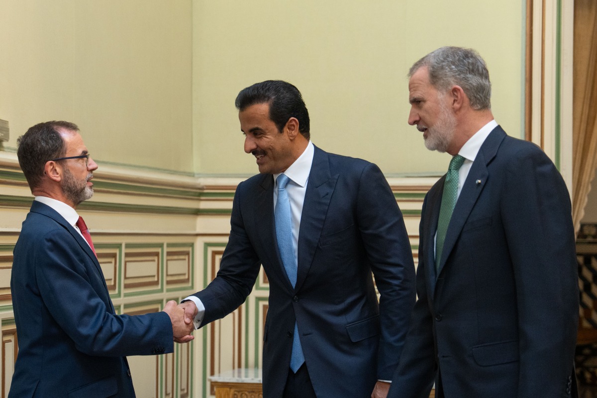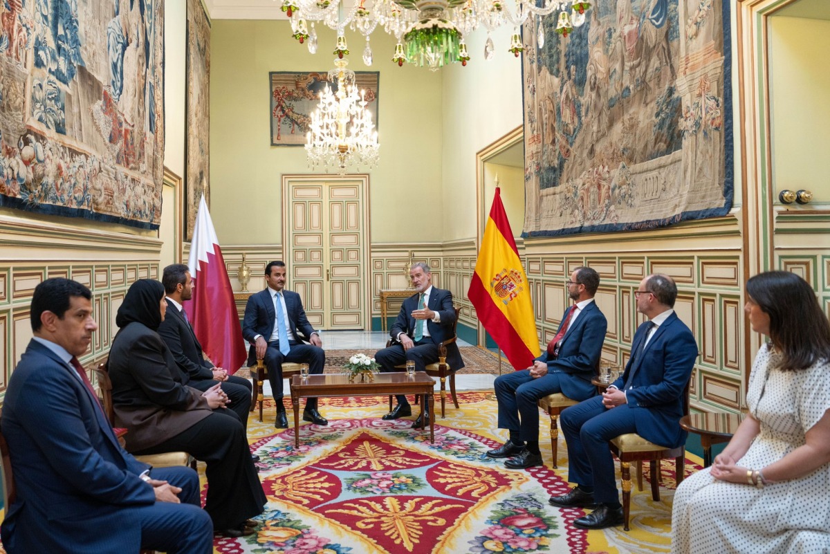 التقى حضرة صاحب السمو الشيخ تميم بن حمد آل ثاني أمير البلاد المفدى، اليوم بالقصر الملكي في مدينة إشبيلية، مع جلالة الملك فيليبي السادس ملك إسبانيا الصديقة، على هامش حفل العشاء المقام على شرف رؤساء الدول والحكومات المشاركين في المؤتمر الدولي الرابع لتمويل التنمية، الذي تنظمه الأمم المتحدة في مدينة إشبيلية.