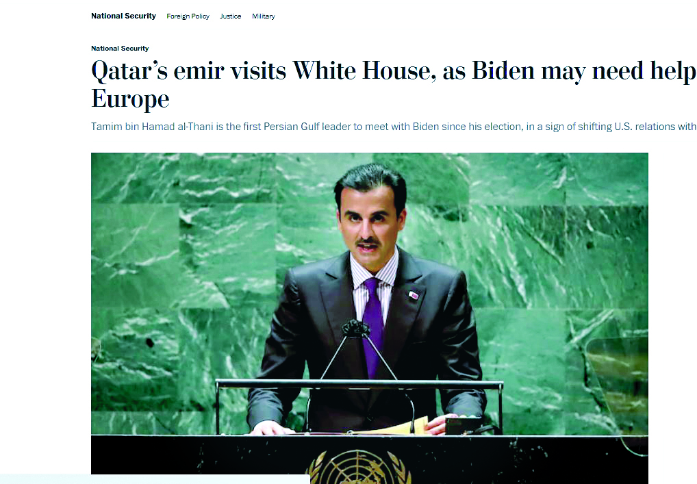 وأبرزت الصحيفة أن حضرة صاحب السمو هو أول زعيم خليجي يلتقي بايدن منذ انتخابه، في علامة على تحول العلاقات الأمريكية مع المنطقة. وقالت الصحيفة إن قطر تستضيف مقر القيادة المركزية الأمريكية وحوالي 10.000 جندي أمريكي.. وقدمت مساعدة حاسمة في إجلاء الولايات المتحدة للمدنيين من أفغانستان وأدارت المصالح الأمريكية هناك منذ الانسحاب الأمريكي، فضلاً عن لعب دور رئيسي في مجالات أخرى تهم الولايات المتحدة، بما في ذلك القضايا الإيرانية والفلسطينية.