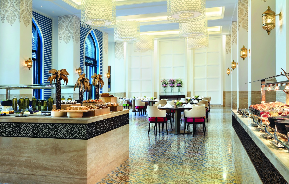 يتميز مطعم البراحة بتصميم مميز، مع أسقف عالية وأثاث ذو ألوان زاهية يضمن تجربة استثنائية، سواء اختار الضيوف تناول الطعام في الداخل أو على التراس الخارجي المطل على الفناء.