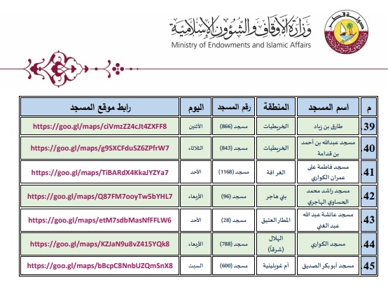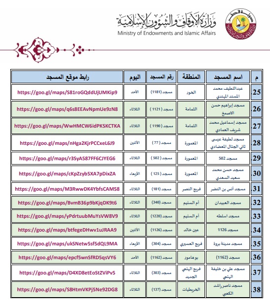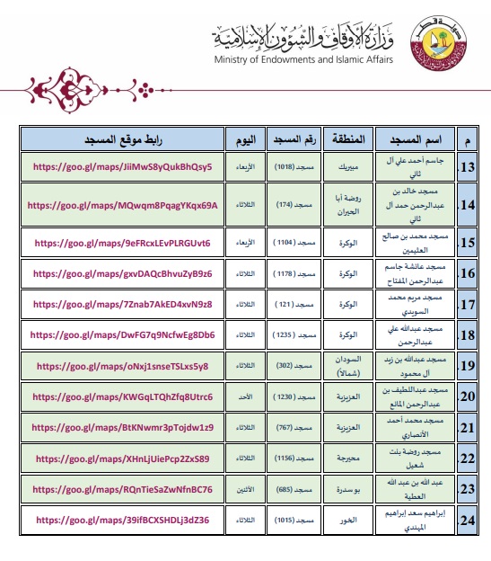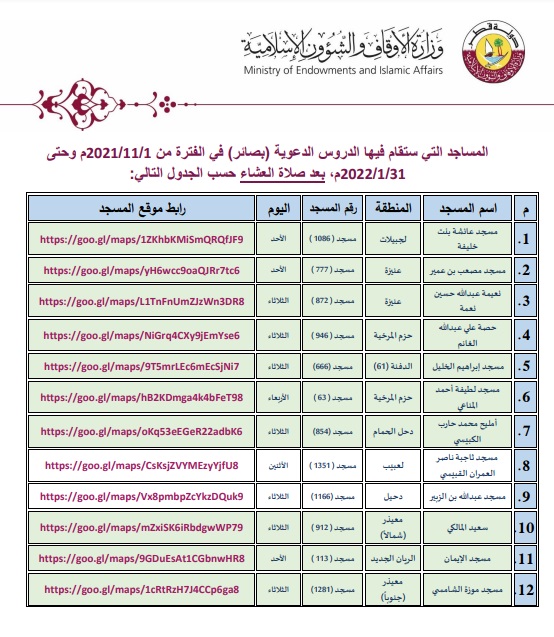 ووفق الحساب الرسمي لوزارة الأوقاف على تويتر فإن المساجد التي ستقام فيها الدروس الدعوية ( بصائر) هي :