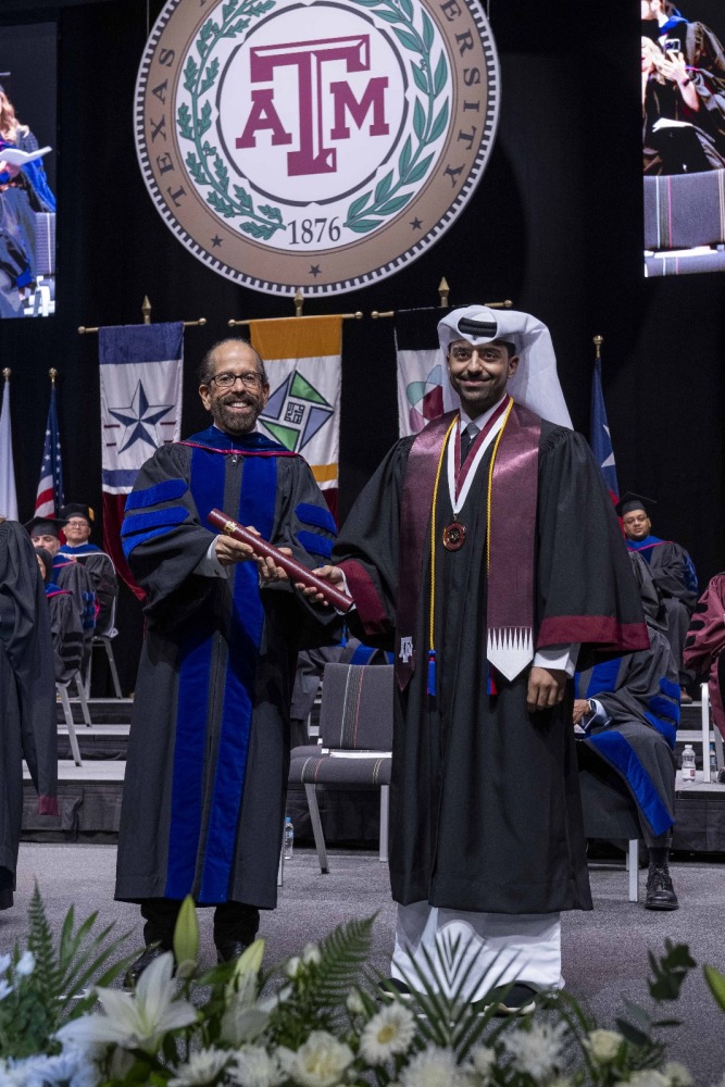 وقال: «عندما تبدؤون المرحلة التالية من حياتكم، سواء بالانضمام للقوى العاملة أو متابعة دراستكم في إحدى برامج الدراسات العليا المتميزة في العالم، تذكروا ما يميزكم: أنتم خريجو جامعة تكساس إي أند أم وتحملون إرث هذه الجامعة وقيمها. وأنتم أيضاً سفراء لمؤسسة قطر ودولة قطر، التي استثمرت في كل واحد منكم. وبحصولكم على الشهادة هذا المساء، يقع على عاتقكم الالتزام بقيم الاحترام والتميز وسمات القيادة والوفاء والنزاهة والإيثار التي تميّز جميع خريجي جامعتنا. لتكن هذه القيم منارة لكم في جميع أعمالكم، وأظهروا للعالم أن مهندسي جامعة تكساس إي أند أم هم خبراء اليوم وقادة الغد في القطاع والمؤسسات الحكومية والأكاديمية. حان الوقت لإطلاق العنان لإمكاناتكم كقادة لاقتصاد المعرفة في قطر والتحول العالمي في مجال الطاقة».