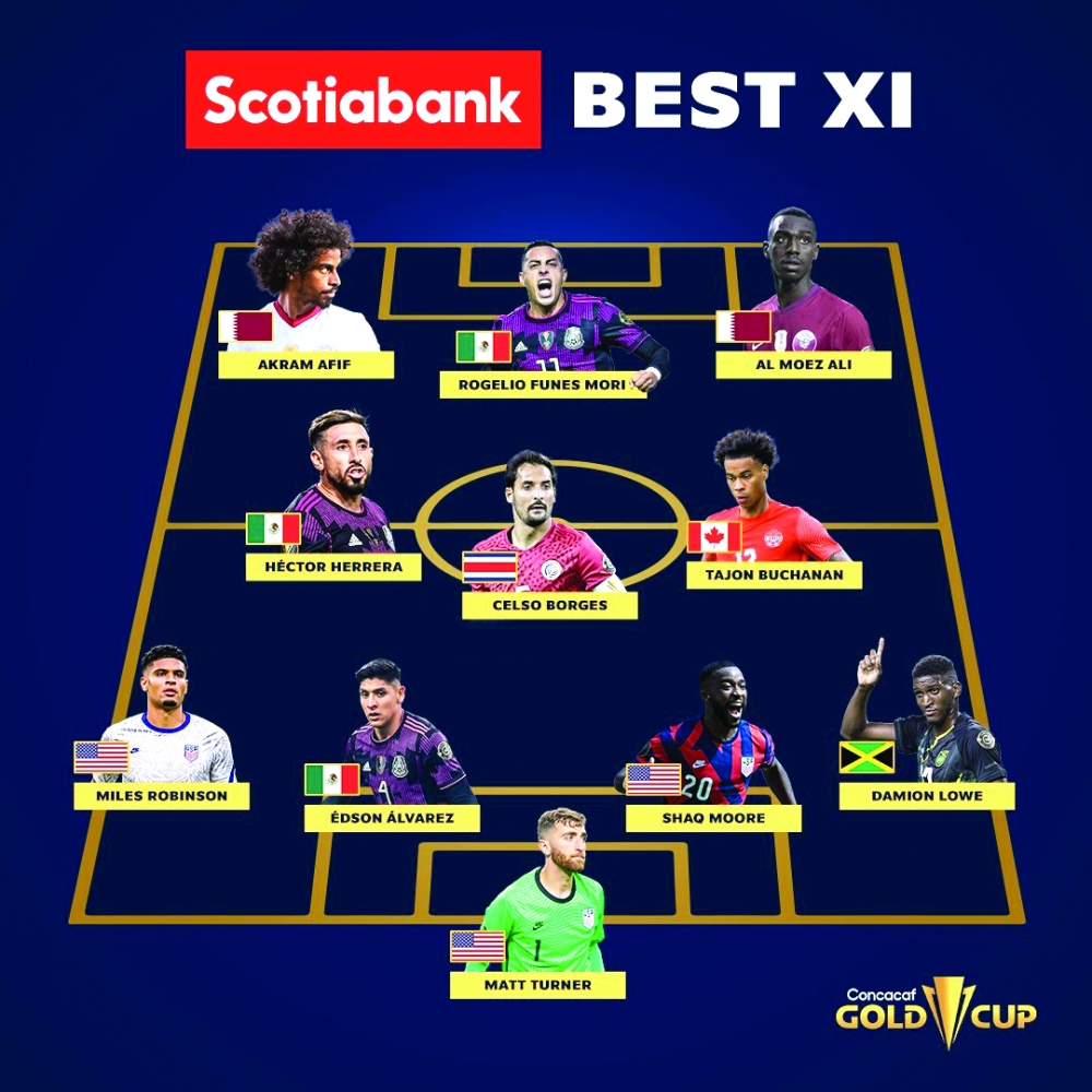 حصل نجم منتخبنا الوطني أكرم عفيف على التقييم الأعلى بالبطولة بعلامة 8,10 لموقع سوفاسكور الخاص ببطولة الكأس الذهبية، واختياره ضمن التشكيلة المثالية لنسخة الكونكاكاف 2021، وجاء تقييم سوفاسكور لما قدمه أكرم عفيف من مستوى فني مميز خلال البطولة ساهم في قيادة منتخبنا الوطني إلى الدور نصف النهائي. وذكر موقع البطولة أن اختيار أكرم عفيف ضمن الأفضل لأنه سجل هدفين وصنع 3 تمريرات حاسمة جعلت المنتخب القطري يتألق بشكل كبير في البطولة القارية التي قدم فيها مستوى كبيرا ونافس أكبر المنتخبات.