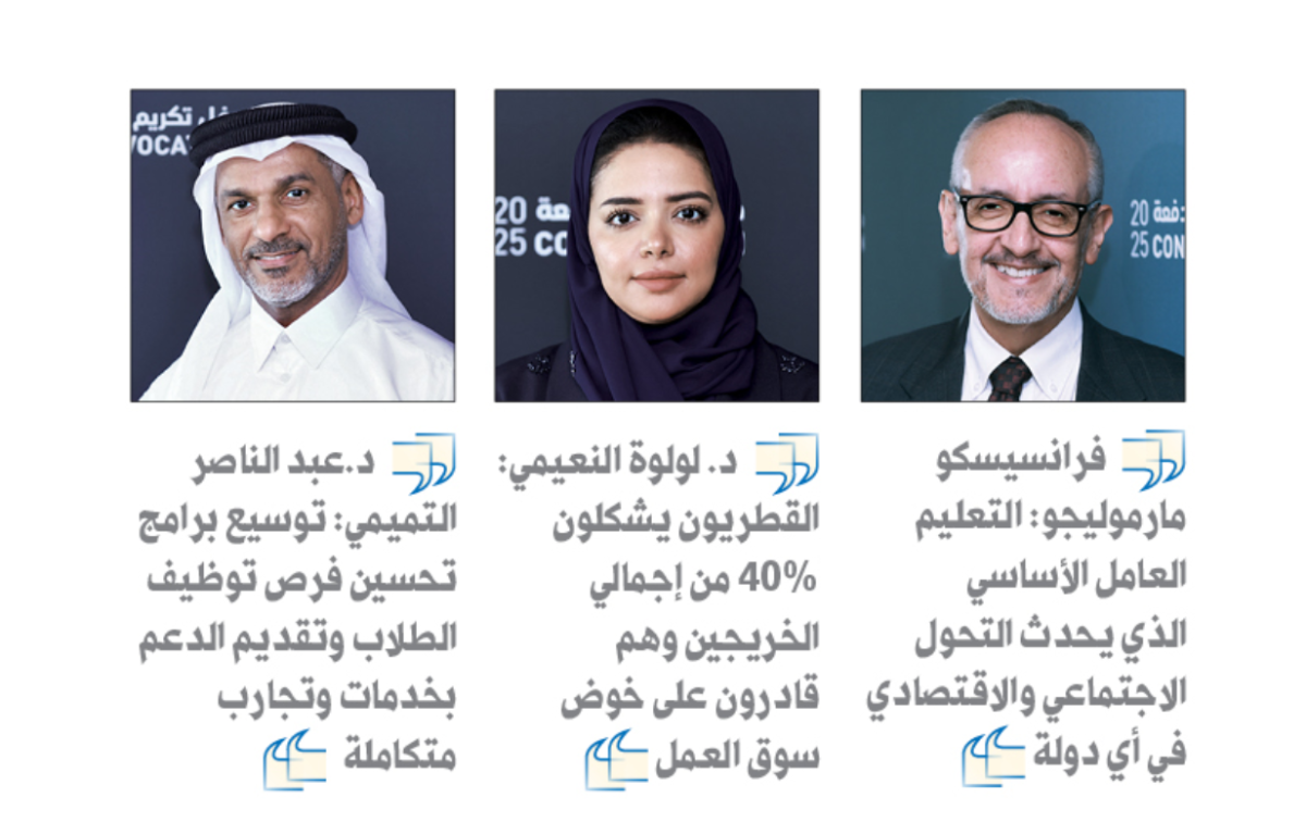 وأضافت أنّ القطريين يشكلون نسبة 40% من إجمالي الخريجين، وهم قادرون ومؤهلون على خوض سوق العمل بفضل البيئة الأكاديمية التي هيأتها المؤسسة.