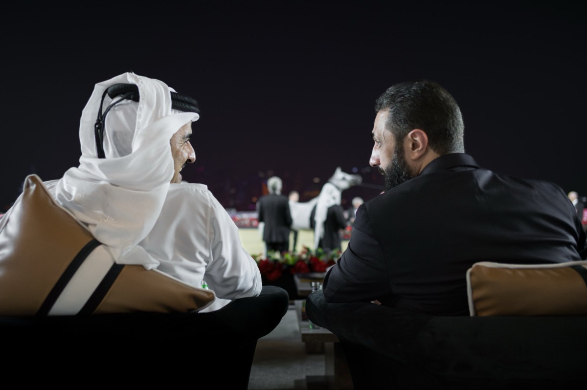 شهد حضرة صاحب السمو الشيخ تميم بن حمد آل ثاني أمير البلاد المفدى، وأخوه فخامة الرئيس أحمد الشرع رئيس الجمهورية العربية السورية الشقيقة، بطولة العالم للخيل العربية "أبطال جولة الجياد 2025"، مساء اليوم، والتي تنظمها المؤسسة العامة للحي الثقافي "كتارا" بالشراكة مع المركز الوطني للمعارض والمسابقات الزراعية في فرنسا "سينيكا"، والمقامة في ميناء الدوحة القديم.