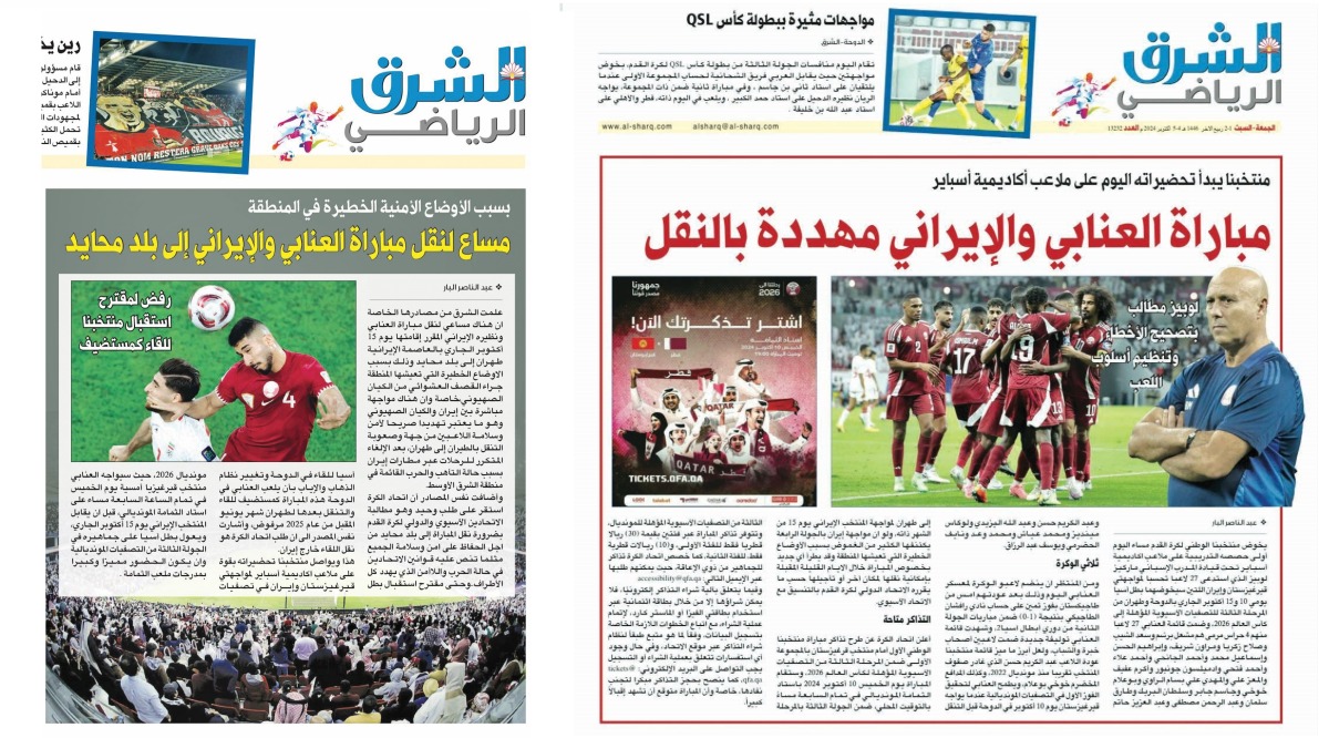 وأكد الاتحاد القاري أمس نقل اللقاء رسميا من طهران عبر موقعه الإلكتروني وجاء في البيان: "ستقام مباراة التصفيات المؤهلة لكأس العالم 2026 بين إيران وقطر في دولة محايدة، وكان من المقرر في البداية أن تقام المباراة يوم 15 أكتوبر على ملعب الإمام رضا في مدينة مشهد شمال شرق إيران، ووفق الاتحاد الإيراني فإن الاتحاد الآسيوي يصر على نقل المباراة نظراً للأوضاع الأمنية في المنطقة، وبسبب تعطل الرحلات الجوية وسط تصاعد الوضع في المنطقة"، وكانت "الشرق" قد انفردت بخبر نقل المباراة إلى ملعب محايد في عدد يوم الخميس 3 أكتوبر، قبل تأكيد الخبر في عدد يوم الإثنين 7 أكتوبر بعد تقديم اتحاد الكرة لطلب رسمي بنقل اللقاء لدولة محايدة.