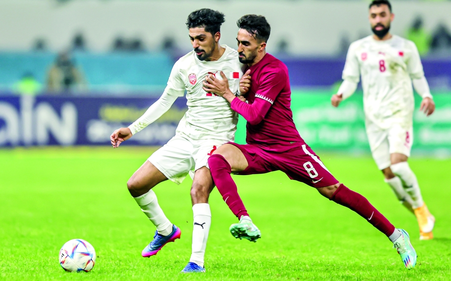احتاج العنابي الى الكثير من الوقت للدخول في أجواء المباراة وتقديم الصورة المعتادة، بعدما أصاب اللاعبين نوع من الارباك في ربع الساعة الأول الذي شهد افضلية واضحة للمنتخب البحريني الذي كان الأحسن انتشارا وسيطرة على الكرة مهددا مرمى مشعل برشم بعد اقل من ثلاث دقائق عندما ارسل علي مدن كرة طويلة صوب عبد الله يوسف خلف الدفاع سددها زاحفة مرت بجوار القائم د (3)، قبل ان يتكرر مشهد الخطورة عبر تسديدة محمد المرهون التي سيطر عليها مشعل د ( 7).