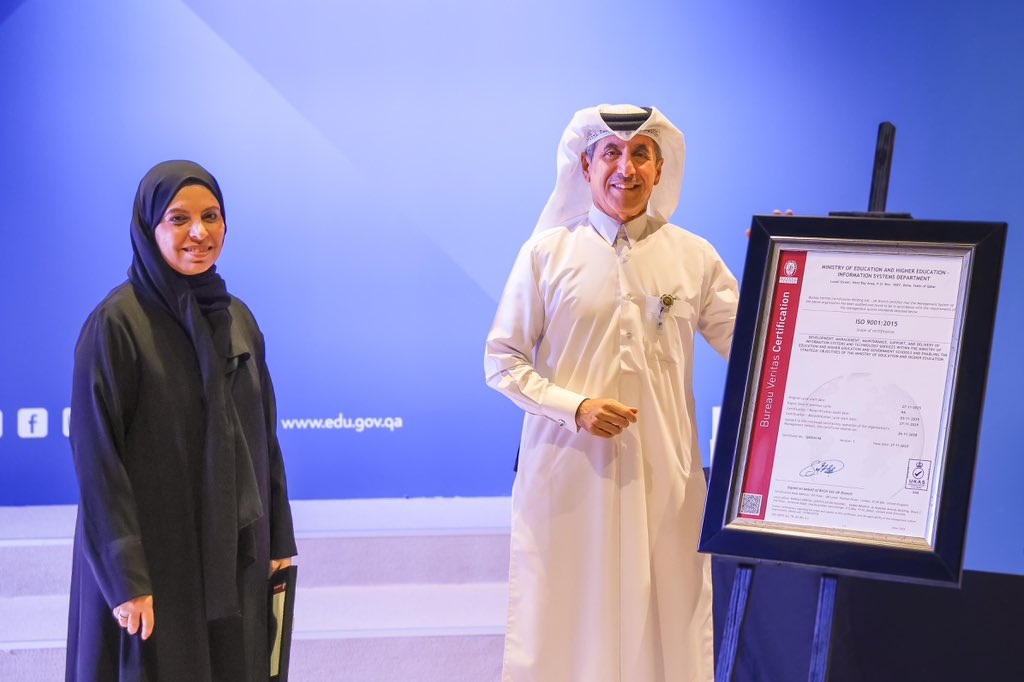 حصلت إدارة نظم المعلومات بوزارة التربية والتعليم والتعليم العالي على شهادة الأيزو 9001:2015 المعتمدة دوليًا، وهي واحدة من أهم المعايير العالمية لأنظمة إدارة الجودة، وذلك من شركة بيرو فيريتاس الدولية المتخصصة في اعتماد وتقييم معايير الجودة.