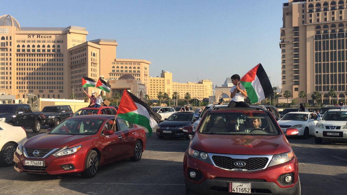 بأعداد غفيرة، نظّم مواطنون ومقيمون في قطر مسيرة حاشدة بالسيارات في المؤسسة العامة للحي الثقافي"كتارا" دعماً لصمود الشعب الفلسطيني والمرابطين في المسجد الأقصى المبارك وتنديداً بالانتهاكات الوحشية لقوات الاحتلال الإسرائيلي والمستوطنين في أحياء القدس والعدوان على غزة.