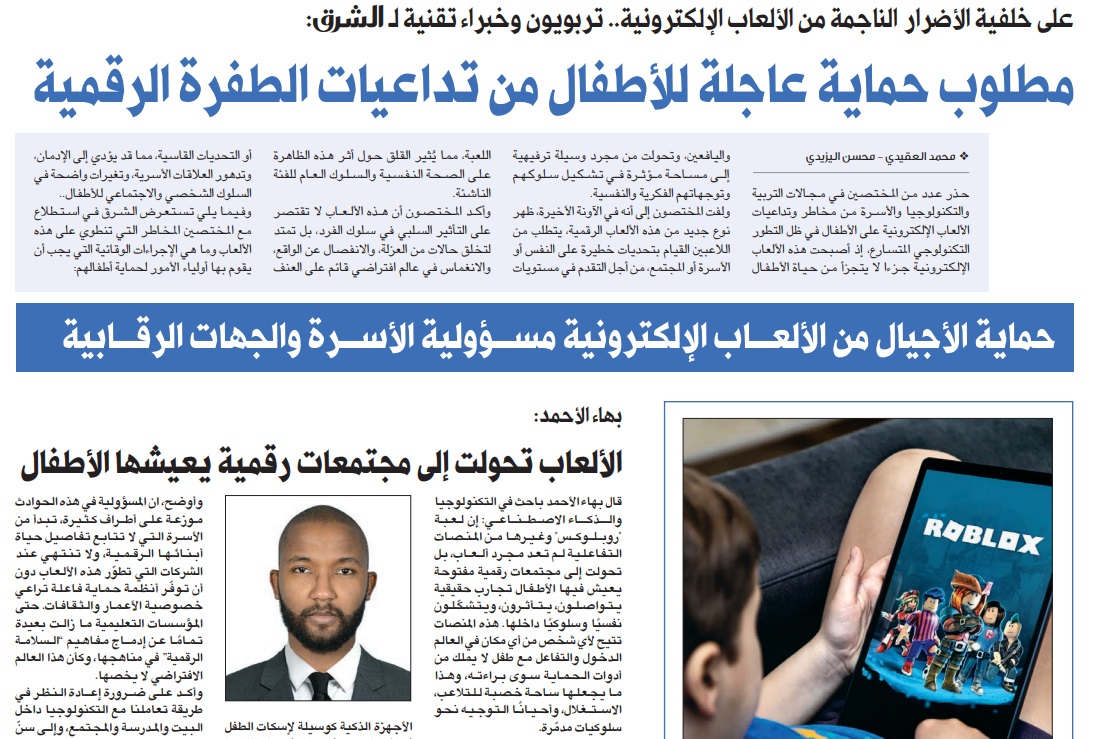 وقال بهاء الأحمد باحث في التكنولوجيا والذكاء الاصطناعي، لـ "الشرق"، إن لعبة "روبلوكس" وغيرها من المنصات التفاعلية لم تعد مجرد ألعاب، بل تحولت إلى مجتمعات رقمية مفتوحة يعيش فيها الأطفال تجارب حقيقية يتواصلون، يتأثرون، ويتشكّلون نفسيًا وسلوكيًا داخلها.