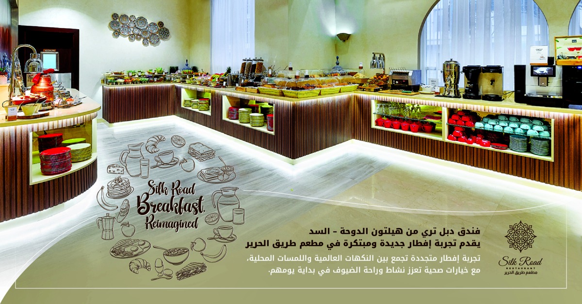 وقد أعلن فندق دبل تري من هيلتون الدوحة – السد إطلاق تجربة إفطار متجددة في مطعمه المميز «طريق الحرير»، المطعم الرئيسي لتناول الطعام. وقد صُممت التجربة الجديدة لتمنح الضيوف انطلاقة مثالية ليومهم، من خلال مزيج يجمع بين التنوع العالمي، والنكهات المحلية والعالمية الطازجة، إلى جانب أسلوب تقديم مبتكر يضمن للضيوف تجربة إفطار لا تُنسى ومليئة بالطاقة.