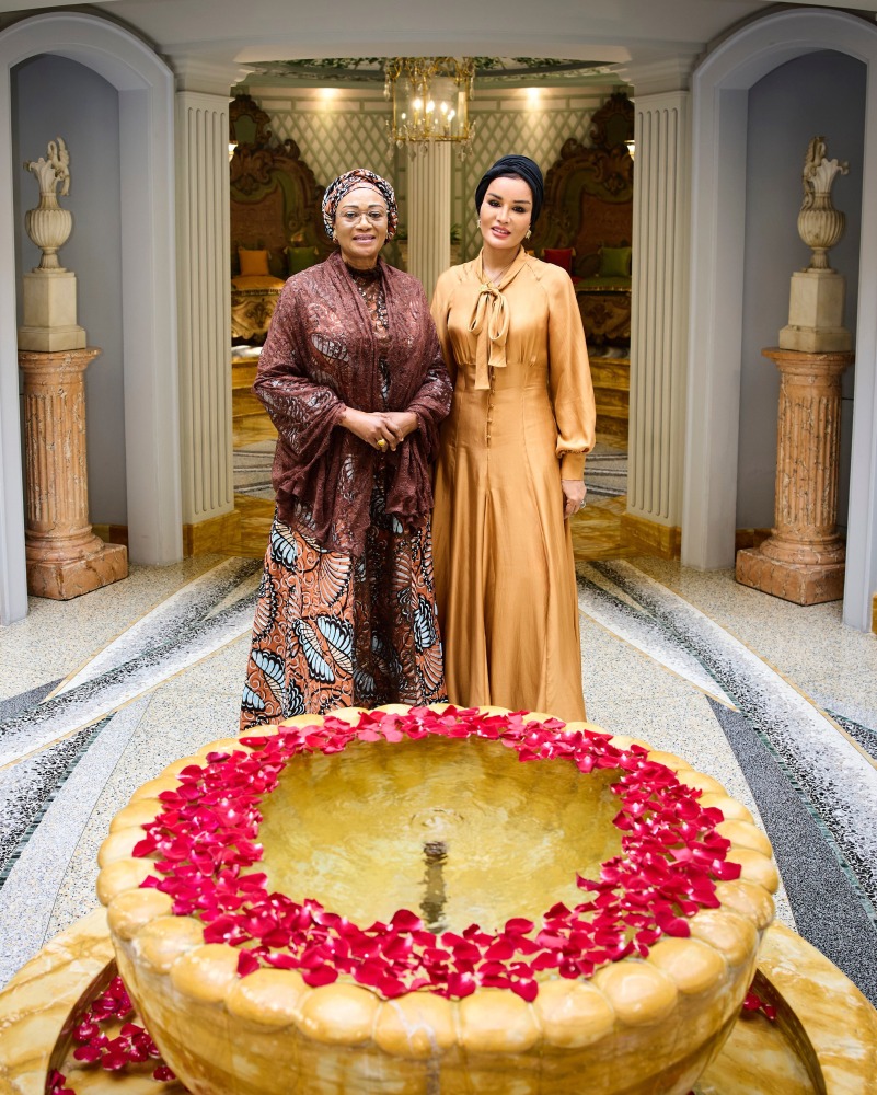 اجتمعت صاحبة السمو الشيخة موزا بنت ناصر، رئيس مجلس إدارة مؤسسة التعليم فوق الجميع، اليوم بسعادة السيدة أولوريمي تينوبو، حرم فخامة رئيس جمهورية نيجيريا الاتحادية.