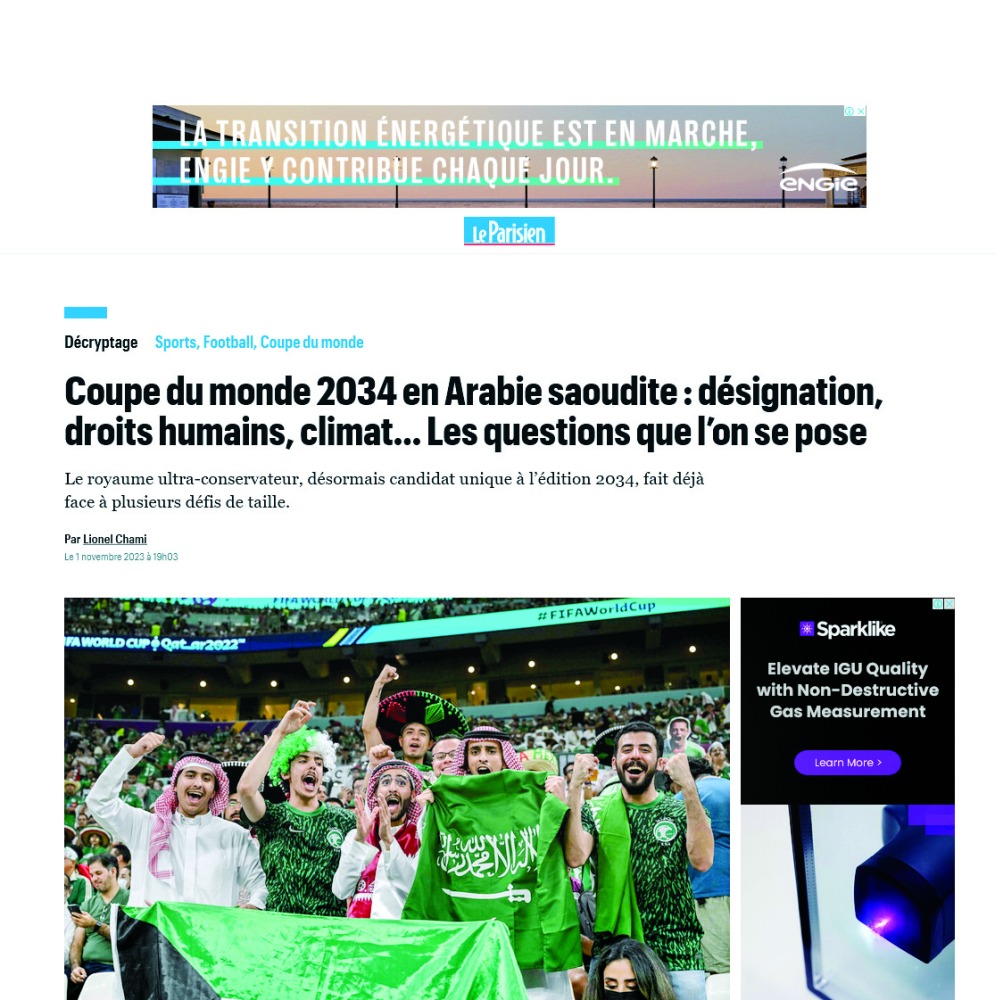 تابعت " لوباريزيان " فيما يتعلق بالإشعاع الإعلامي التي ستحظى به السعودية لتنظيمها أكبر حدث كروي بالعالم وثاني أهم تظاهرة رياضية عالمية بعد الألعاب الأولمبية الصيفية: ستكون السعودية في قلب العالم على مدار 10 سنوات مقبلة بعد أن فازت بالتنظيم دون منافسة واستنادا إلى مبدأ التناوب القاري بعد منح كأس العالم 2030 للدول الثلاث إسبانيا والمغرب والبرتغال.