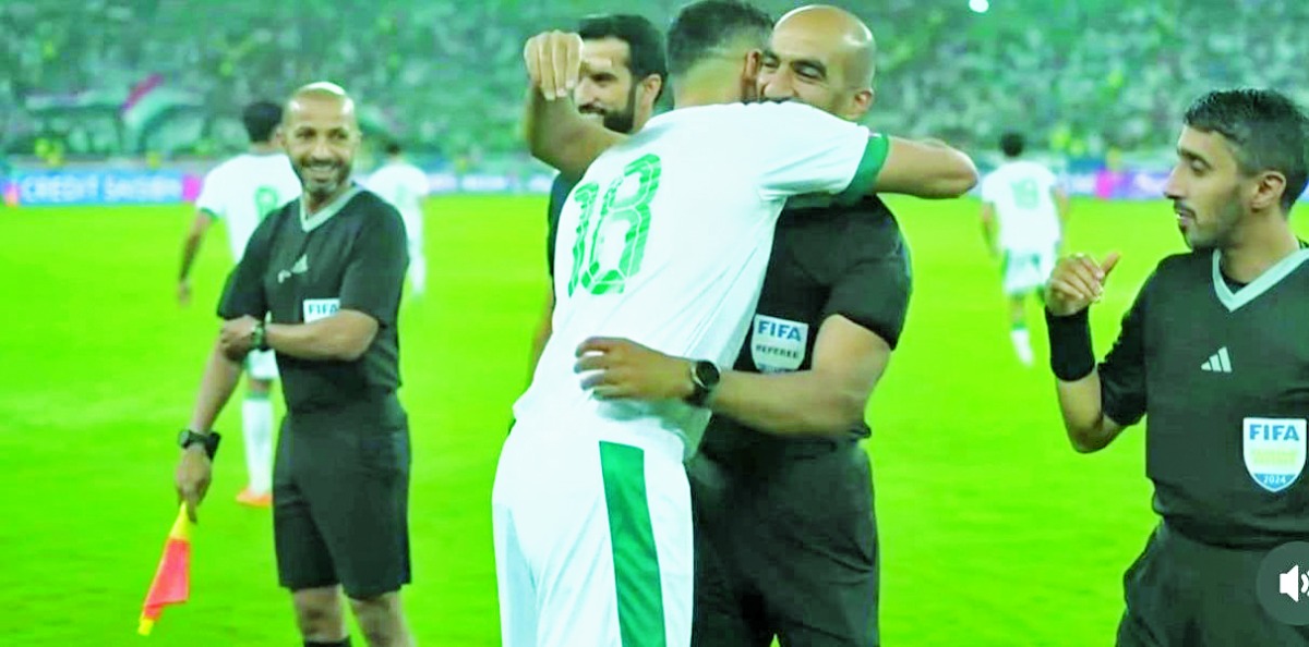 في لقطة جميلة قبل مباراة العراق وفلسطين ضمن مباريات الجولة الثالثة من التصفيات الآسيوية المؤهلة لكأس العالم 2026، عانق ايمن حسين لاعب المنتخب العراقي، حكم المباراة الإماراتي عادل النقبي وذلك للعلاقة الطيبة بين اللاعب الحكم والتي كان سببها تمثيل العراقي لشعار الجزيرة الاماراتي لمدة 6 اشهر الا انها كانت كافية لبناء روح الاخوة بين الاثنين والجدير ذكره بأن هذه اللقطة تصدرت المشهد على مواقع التواصل الاجتماعي خلال الايام القليلة الماضية.