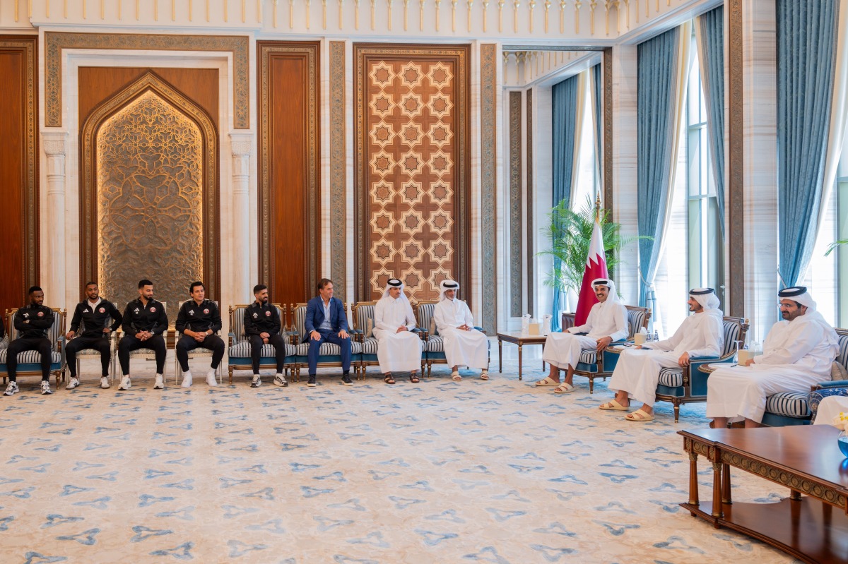 استقبل حضرة صاحب السمو الشيخ تميم بن حمد آل ثاني أمير البلاد المفدى، اليوم في قصر لوسيل، لاعبي منتخب قطر الوطني لكرة القدم، بمناسبة تأهلهم إلى بطولة كأس العالم لكرة القدم FIFA 2026.