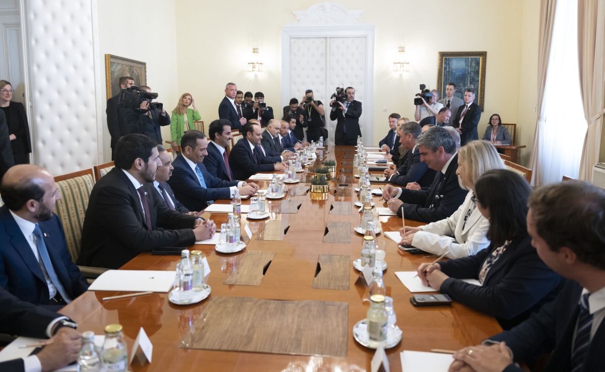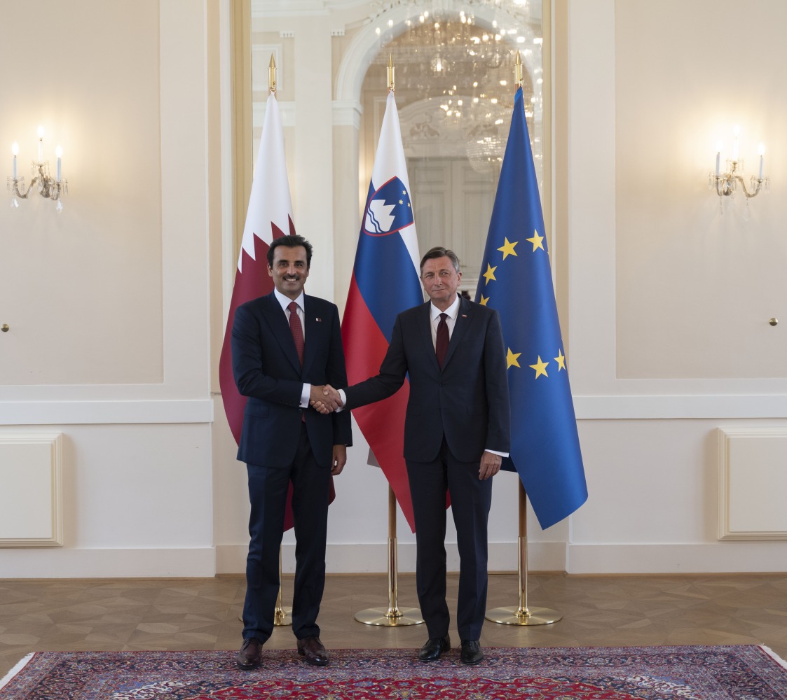 عقد حضرة صاحب السمو الشيخ تميم بن حمد آل ثاني أمير البلاد المفدى، وفخامة الرئيس بوروت باهور رئيس جمهورية سلوفينيا، جلسة مباحثات رسمية، بالقصر الرئاسي في العاصمة ليوبليانا صباح اليوم.