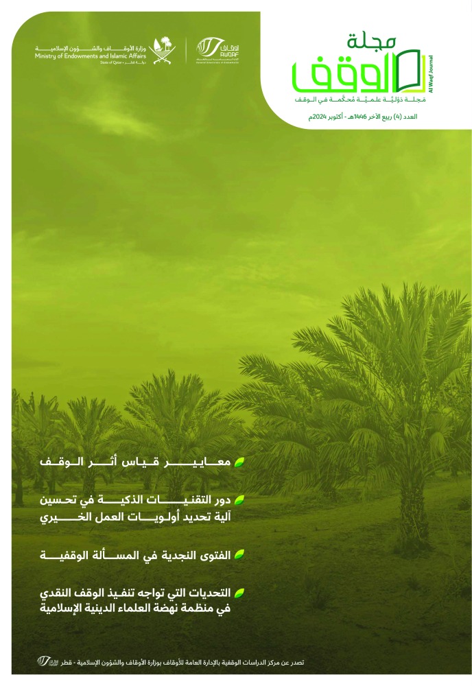 أصدر مركز الدراسات الوقفية بالإدارة العامة للأوقاف بوزارة الأوقاف والشؤون الإسلامية، العدد الرابع من المجلة الدولية العلمية المحكّمة «الوقف».