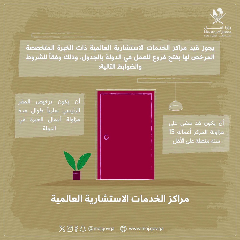 أعلنت وزارة العدل عبر حسابها الرسمي على منصة إكس، أنه يجوز قيد مراكز الخدمات الاستشارية العالمية ذات الخبرة المتخصصة المرخص لها بفتح فروع للعمل في الدولة بالجدول، وفقاً لضوابط وشروط هي: أن يكون مضى على مزاولة المركز أعماله 15 سنة متصلة على الأقل. ويشترط أن يكون ترخيص المقر الرئيسي سارياً طوال مدة مزاولة أعمال الخبرة في الدولة. يضيف هذا القرار فرصاً جديدة للشركات الاستشارية العالمية لتوسيع نطاق خدماتها داخل الدولة، مما يسهم في تعزيز بيئة الأعمال وجذب الاستثمارات الخارجية. كما يأتي هذا التحديث في إطار جهود الوزارة لتحسين البنية التنظيمية وتعزيز الشفافية في سوق الخدمات الاستشارية، مما يعود بالنفع على الاقتصاد الوطني ويزيد من تنافسيته عالميًا.