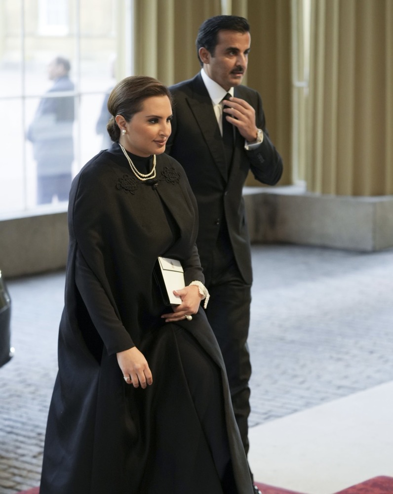 حضر صاحب السمو الشيخ تميم بن حمد آل ثاني أمير البلاد المفدى، وسمو الشيخة جواهر بنت حمد بن سحيم آل ثاني حرم سمو الأمير، مراسم الاستقبال الذي أقامه جلالة الملك تشارلز الثالث ملك المملكة المتحدة الصديقة، لأصحاب الجلالة والفخامة والسمو والسعادة قادة الدول والحكومات المشاركين في مراسم تشييع جثمان الملكة إليزابيث الثانية، وذلك مساء اليوم في قصر باكنغهام.