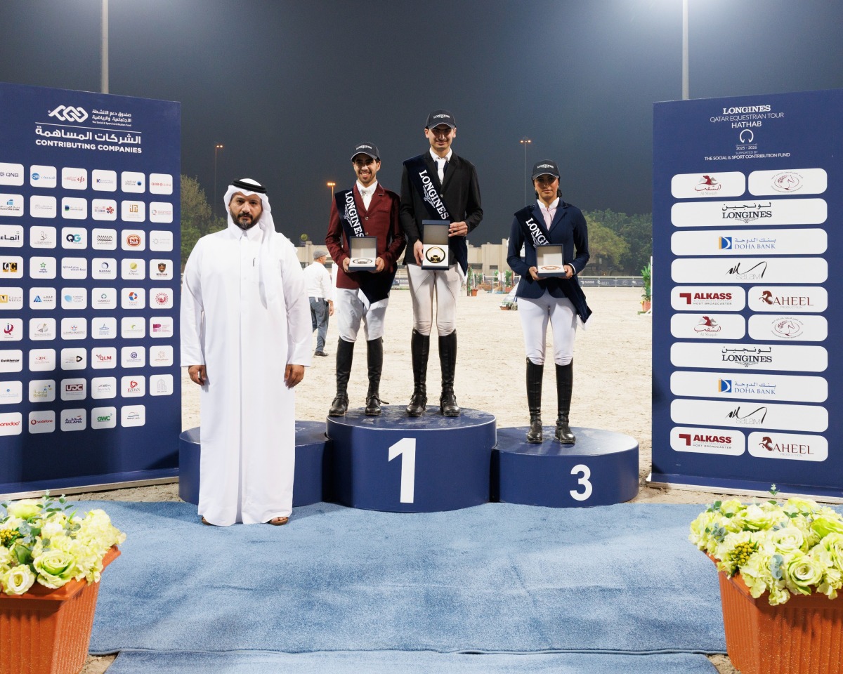 وقام السيد عمر البوعينين، مدير قطاع الخدمات المساندة في الاتحاد القطري للفروسية بتتويج الفائزين في الجولة المفتوحة.