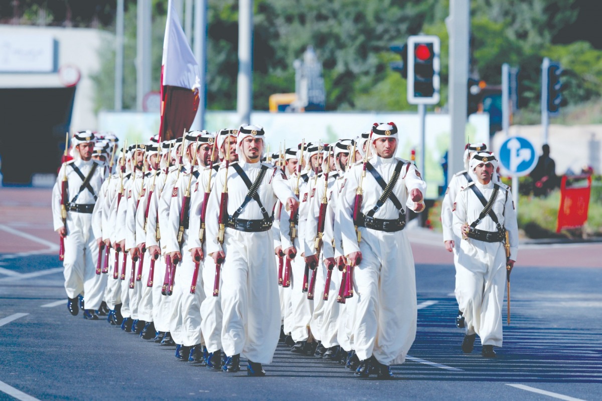 قدمت القوات المسلحة بمختلف صنوفها العسكرية وقوات الأمن الداخلية " لخويا " وقوات من الحرس الأميري بجانب قوات من وزارة الداخلية عرضا عسكريا بريا وبحريا مبهرا في التاسعة من صباح أمس السبت بمناسبة ذكرى اليوم الوطني الذي يوافق الثامن عشر من كل عام.