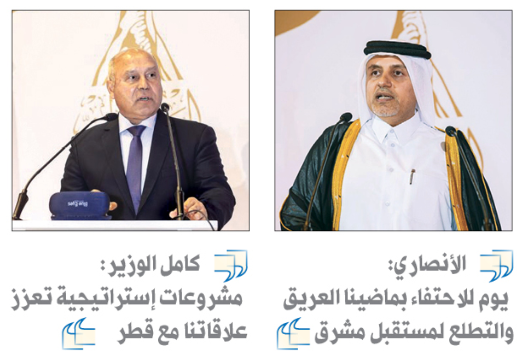 وثمن السفير الأنصاري العلاقات الأخوية التي تجمع قطر ومصر موضحًا أنهما يشتركان في العديد من القيم، كعضوين فاعلين ومسؤولين في المجتمع الدولي، فإلى جانب اهتمامهما بتعزيز السلم والأمن الدوليين تشتركان في اهتمام قيادتيهما بالتنمية، فكما في مصر، تشهد دولة قطر كذلك نهضة تنموية غير مسبوقة تنسجم وأهداف رؤيتها الوطنية 2030 التي تتجسد أهدافها واقعًا وحقيقة في مختلف المجالات الصحية والاجتماعية والاقتصادية والتعليمية والعمرانية، فالإنجازات لا تتوقف ولا تنتهي، حيث أصبحت قطر في مصاف الدول التي ينعم مواطنوها بالرخاء الاقتصادى والتعليم الجيد.