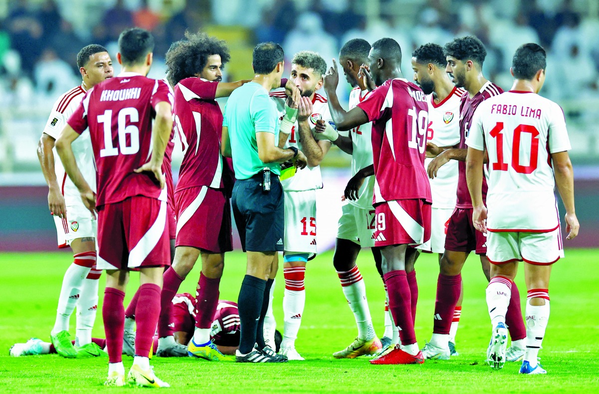 تعرض منتخبنا الوطني الأول لكرة القدم لخسارة قاسية بنتيجة خمسة أهداف مقابل لا شيء في القمة الخليجية التي حل فيها مساء أمس ضيفا على نظيره الإماراتي على استاد نهيان في أبوظبي ضمن الجولة السادسة من منافسات المجموعة الأولى بالدور الثالث من التصفيات الآسيوية المؤهلة إلى نهائيات كأس العالم 2026 المقرر إقامتها بالولايات المتحدة الأمريكية والمكسيك وكندا.. وبددت الخسارة حظوظ منتخبنا وآماله في المنافسة على التأهل المباشر للمونديال القادم والذي يمر عبر احتلال أحد المركزين الأول والثاني في المجموعة حيث أصبح بعدها يحتل المركز الرابع بعد أن بقي رصيده متوقفا عند 7 نقاط في المركز الرابع فيما رفع الأبيض الإماراتي رصيده إلى 10 نقاط في المركز الثالث.