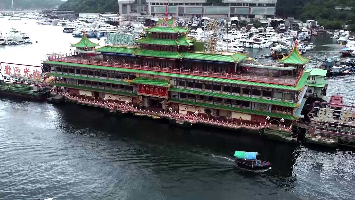 وسحب المطعم بعيداً عن هونغ كنغ، وأفادت الشركة بأنها تخطط لنقله إلى موقع منخفض التكلفة حيث يمكن صيانته، وأن يبقى المطعم العائم في مكان غير معلوم أثناء انتظاره مشغلا جديدا.