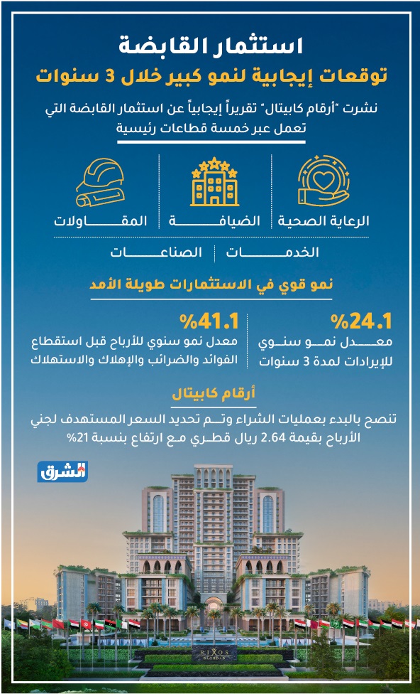 وأشار تقرير «أرقام كابيتال» إلى أن استثمار القابضة ش.م.ع.ق تسعى إلى مضاعفة أرباحها قبل الفوائد والضرائب والاستهلاك بثلاث أضعاف بحلول عام 2025 وقد خصصت ميزانية قدرها 2.1 مليار ريال قطري في النفقات الرأسمالية.