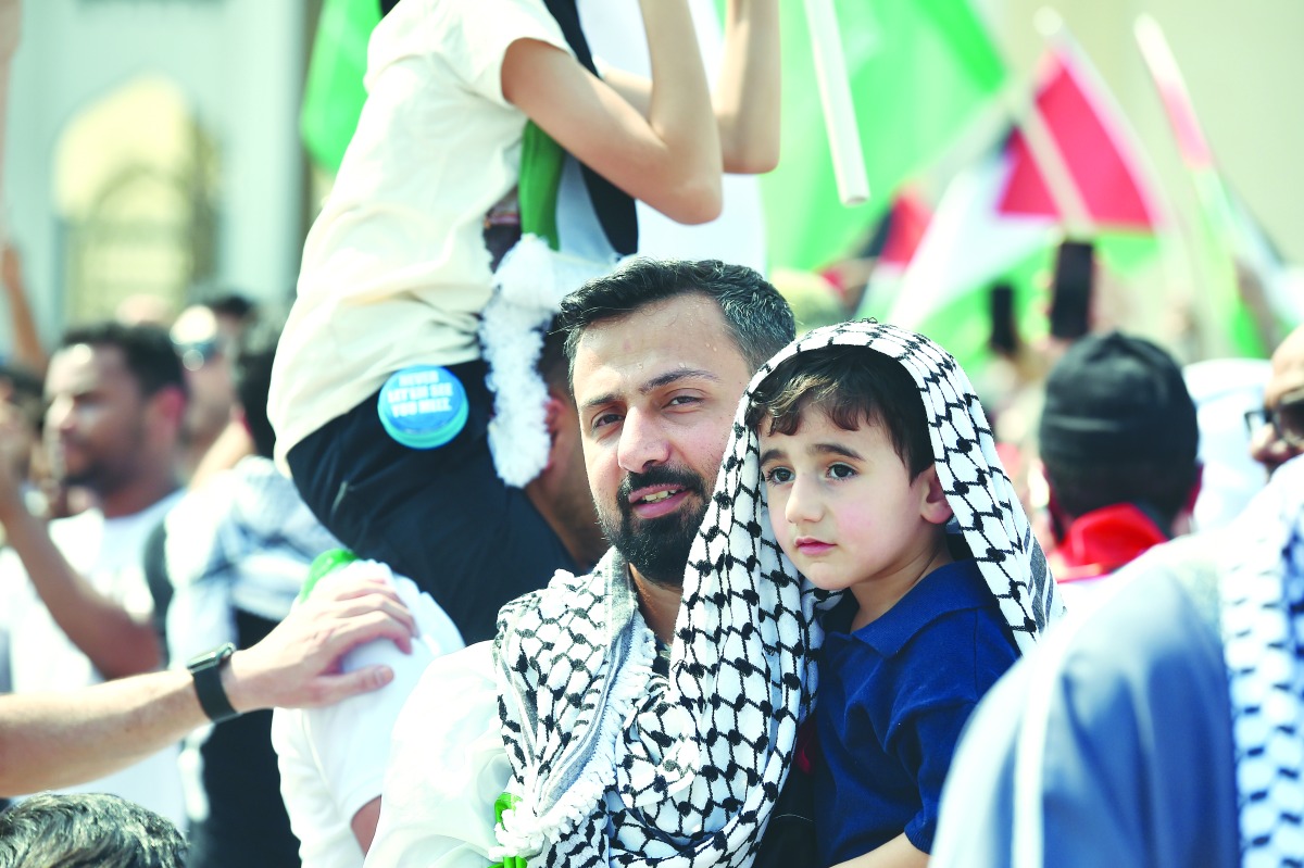 وشهدت ساحة جامع الإمام بعد صلاة الجمعة حشودا غفيرة ترتدي الكوفية وترفع علمي دولة قطر ودولة فلسطين لمناصرة أهل غزة وإدانة الجرائم الوحشية التي ترتكبها قوات الاحتلال في قطاع غزة ومدن بالضفة الغربية والتي ارتقى خلالها مئات الشهداء الفلسطينيين من الرجال والنساء والأطفال وكبار السن، بالإضافة إلى التدمير الكامل الذي لحق بالبنية التحتية الأساسية في القطاع من مدارس ومستشفيات ومبانٍ سكنية.