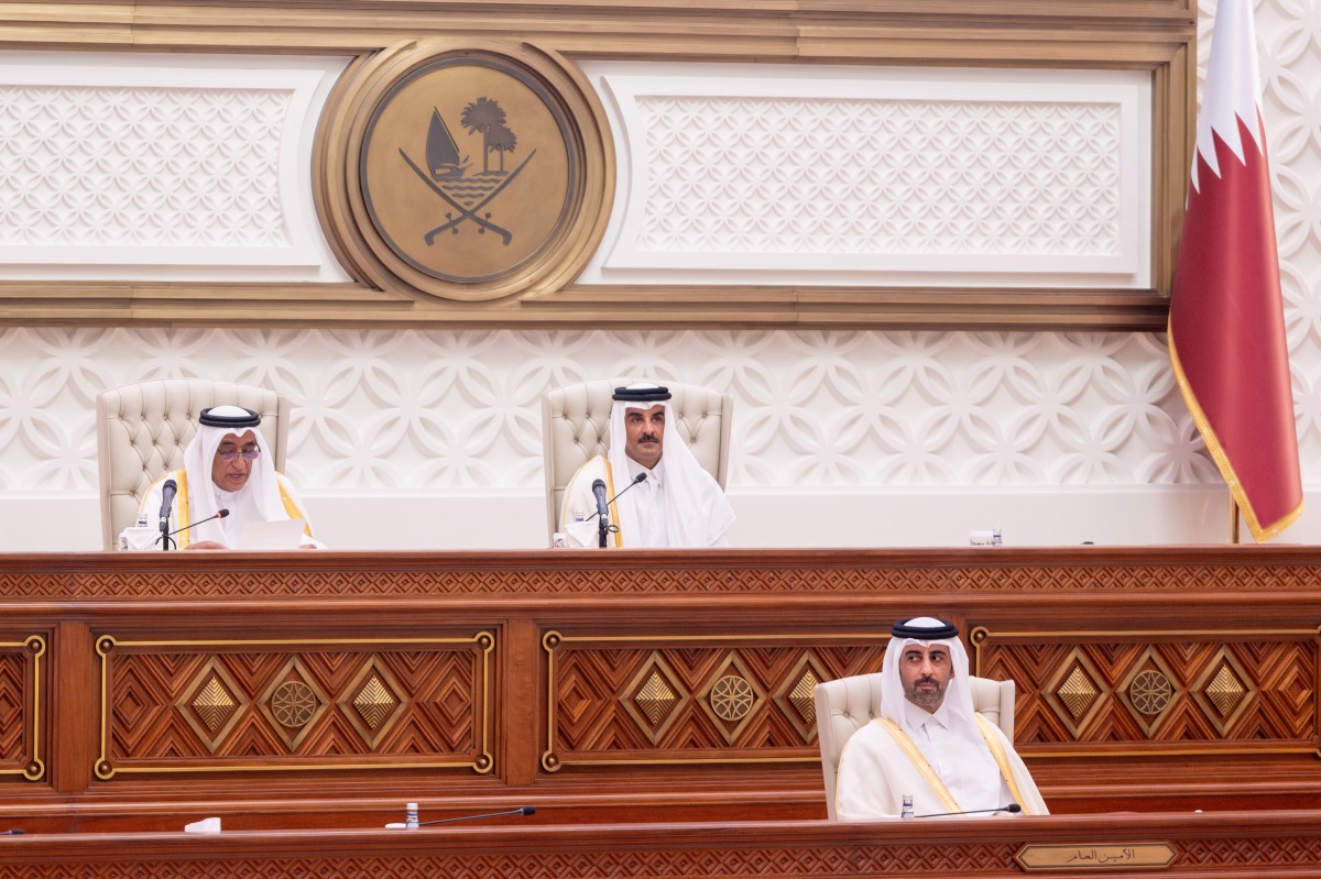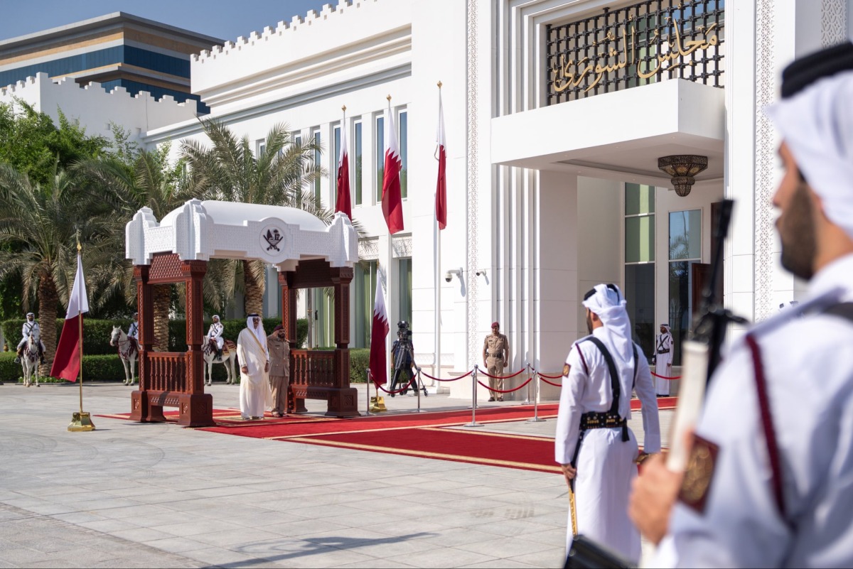 تفضل حضرة صاحب السمو الشيخ تميم بن حمد آل ثاني أمير البلاد المفدى، فشمل برعايته الكريمة افتتاح دور الانعقاد العادي الأول من الفصل التشريعي الثاني، الموافق لدور الانعقاد السنوي الرابع والخمسين لمجلس الشورى، صباح اليوم في قاعة تميم بن حمد بمقر المجلس.