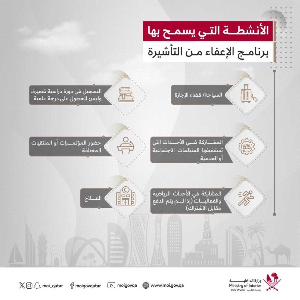 * الأنشطة التي يسمح بها برنامج الإعفاء من التأشيرة: