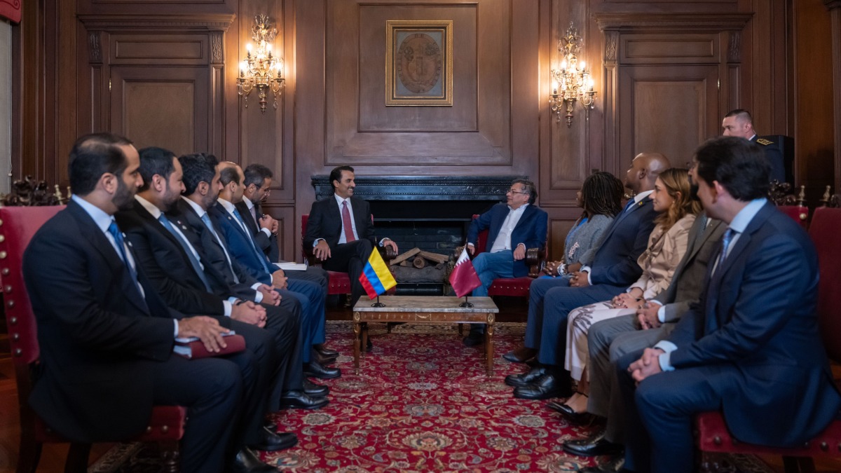 عقد حضرة صاحب السمو الشيخ تميم بن حمد آل ثاني أمير البلاد المفدى، وفخامة الرئيس غوستافو بيترو رئيس جمهورية كولومبيا الصديقة، جلسة مباحثات رسمية اليوم بالقصر الرئاسي كاسا دي نارينيو في العاصمة بوغوتا.