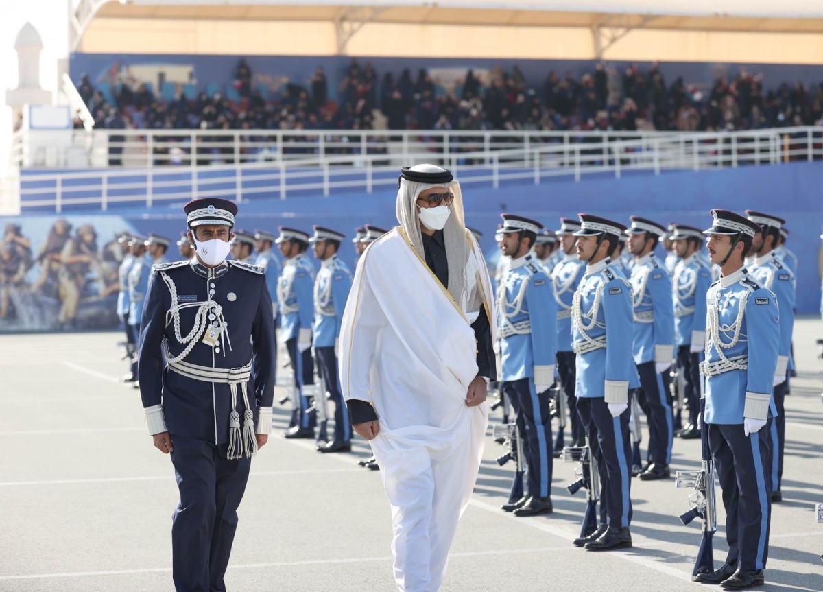 بارك معالي الشيخ خالد بن خليفة بن عبدالعزيز آل ثاني رئيس مجلس الوزراء ووزير الداخلية لخريجي كلية الدفعة الثالثة من الطلبة المرشحين بكلية الشرطة التابعة لوزارة الداخلية وذلك بمعهد تدريب الشرطة بمنطقة السيلية صباح اليوم.