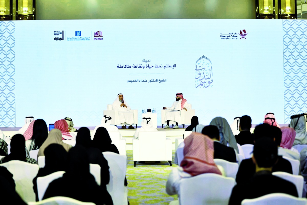 نظمت وزارة الثقافة، مساء اليوم، ندوة بعنوان "الإسلام نمط حياة وثقافة متكاملة"، وذلك ضمن موسم الندوات في نسخته الرابعة، بحضور سعادة الشيخ عبدالرحمن بن حمد آل ثاني وزير الثقافة، وجمع غفير من المثقفين والجماهير.