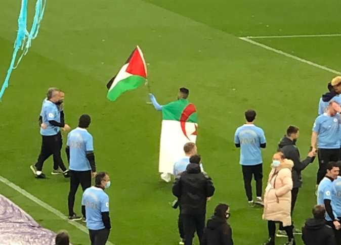 احتفل المحترف الجزائري رياض محرز بفوز فريقه مانشستر سيتي بلقب الدوري الإنجليزي الممتاز، اليوم الأحد، برفع علم فلسطين.