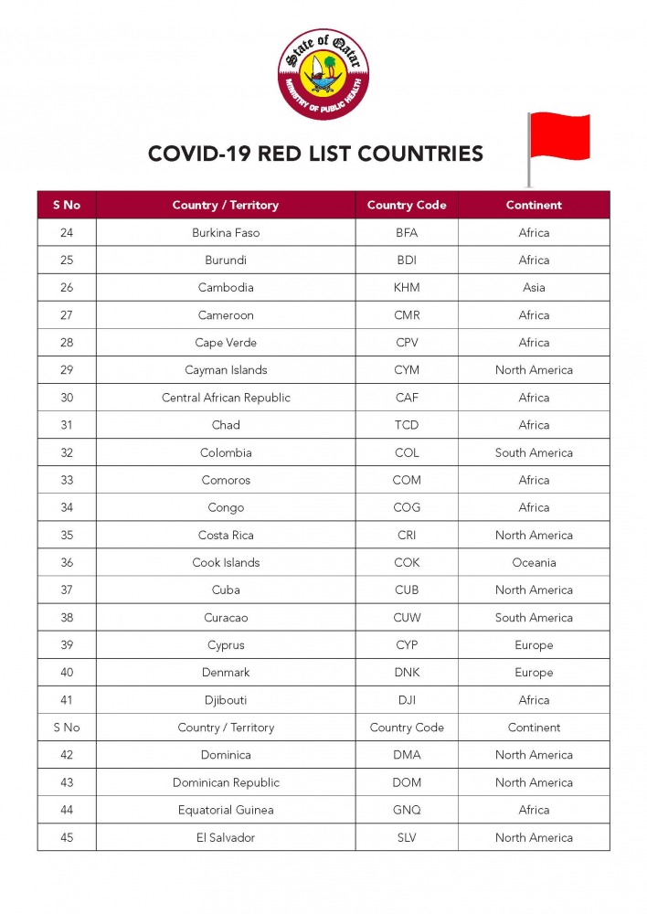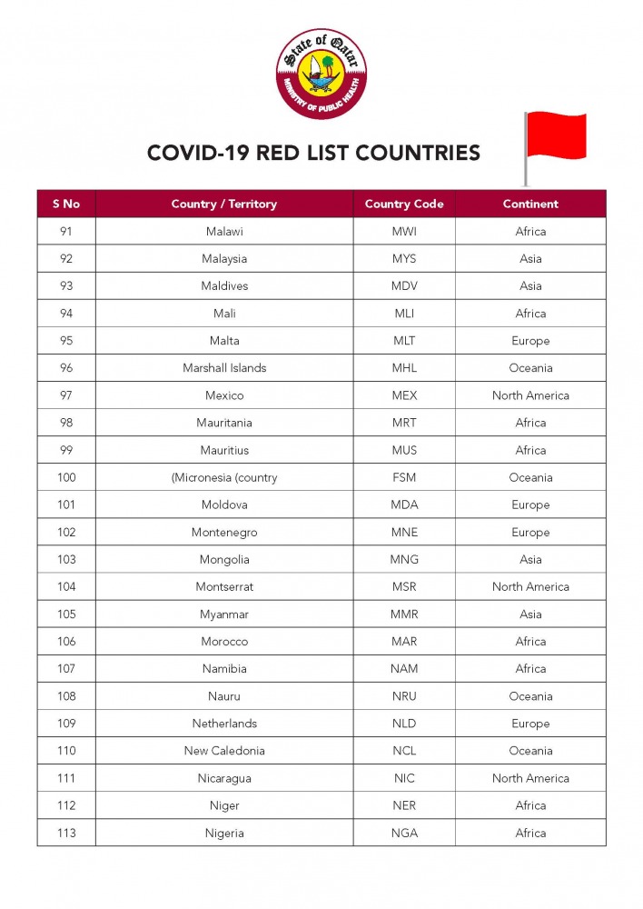 أعلنت وزارة الصحة عن تحديث قائمة الدول المصنفة حسب خطورة وباء كورونا "كوفيد 19" اعتباراً من ٢٣ أغسطس.