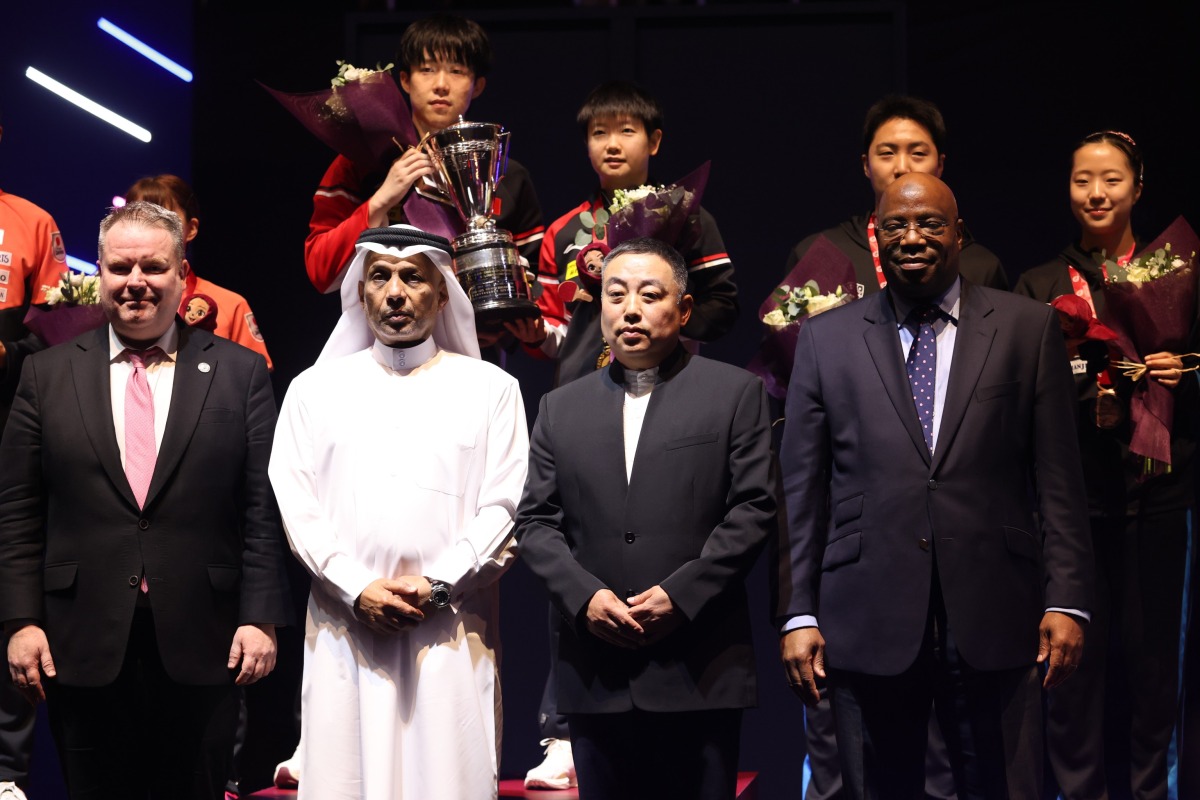 وعقب المباراة، توج السيد خليل المهندي رئيس الاتحاد القطري والاتحادين العربي والآسيوي النائب الأول لرئيس الاتحاد الدولي لكرة الطاولة، الفائزين بالميداليات الذهبية وكأس المركز الأول، فيما تولى السيد ستيف داينتون المدير التنفيذي للاتحاد الدولي للعبة تتويج الزوجي الياباني الفائز بالمركز الثاني بالميداليات الفضية، كما قدم الميداليات البرونزية للفائزين بالمركز الثالث وهم ثنائي هونغ كونغ، المصنف الثالث عالميا، والمكون من اللاعب وانج شان تينج وزميلته دو هوا كي، والزوجي الياباني، المصنف الرابع عالميا، والمكون من اللاعب ليم جونج هون ومواطنته شين يوبين.