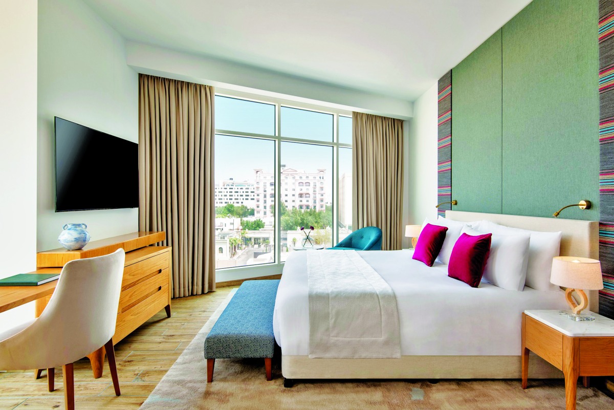 من خلال أسلوب التصميم الاستثنائي والأجواء الرائعة، ينشر الفندق طاقة إيجابية بين الضيوف فيشعرون بالتميّز وبانتمائهم إلى تجربة فريدة. مستوحاة من الحرف التقليدية للقبائل البدوية في الصحراء، وباستخدام الأقمشة المنسوجة النابضة بالحياة والتصميم الخشبي المتشابك، تصوّر المجموعة الفنّية المناظر الطبيعية الصحراوية الشاسعة والكثبان الرملية بألوان ترابية ودرجات ذهبية تحت السماء الليلية والنجوم التي أرشدت البدو عبر العصور.