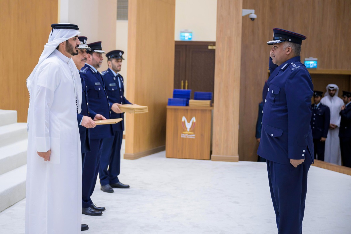 شهد سعادة الشيخ خليفة بن حمد بن خليفة آل ثاني، وزير الداخلية وقائد قوة الأمن الداخلي "لخويا" - رئيس المجلس الأعلى لأكاديمية الشرطة، حفل تخريج الدفعة الأولى من طلبة برنامجي ماجستير القانون وماجستير الدراسات الأمنية بكلية الدراسات العليا البالغ عددهم (17) خريجًا، والدورة التأهيلية الحتمية العاشرة لخريجي الجامعات المدنية بكلية الشرطة والبالغ عددهم (76) خريجًا، والدورة الحتمية الثالثة لخريجات الجامعات المدنية بمعهد الشرطة النسائية والبالغ عددهن (17) خريجة، وذلك في مقر أكاديمية الشرطة، حيث شمل البرنامجان والدورات منتسبين من وزارة الداخلية وقوة الأمن الداخلي "لخويا".