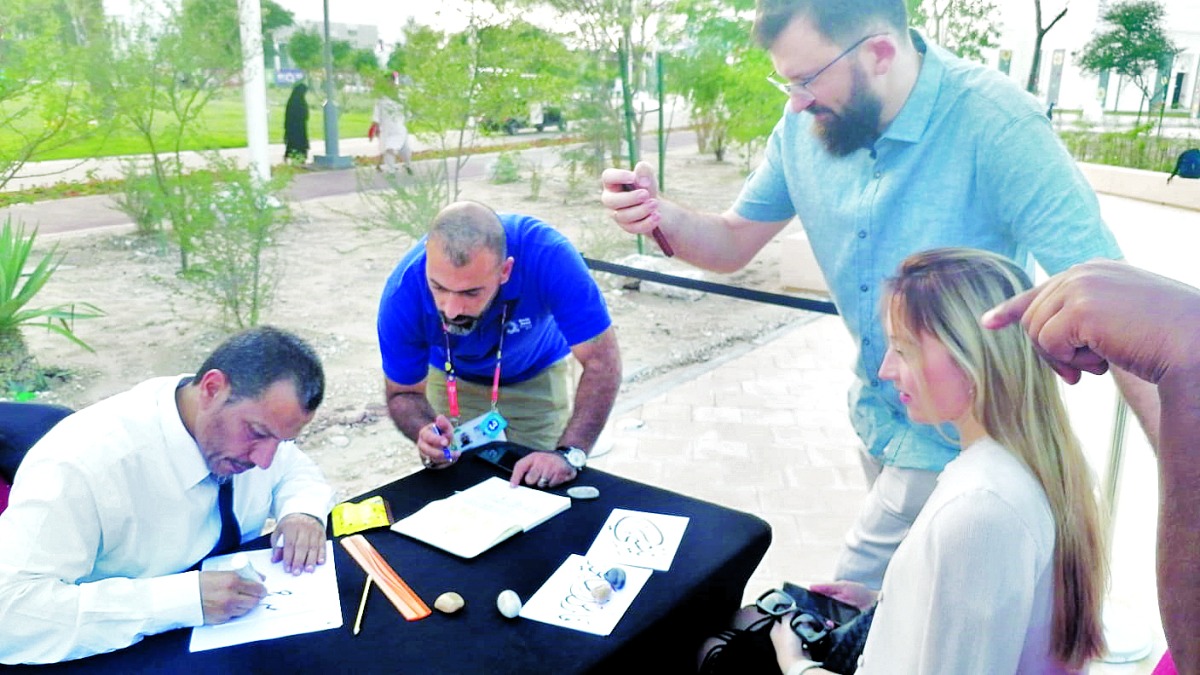 وقد استقطبت فعالية " كتابة اسماء الزوار بالخط العربي" في محيط جناح دولة قطر بالمنطقة الدولية بالمعرض الذي يحمل شعار " صحراء خضراء.. بيئة أفضل" قطاعا كبيرا من جمهور الحدث العالمي على اختلاف جنسياتهم ليقفوا في طوابير أمام خبير الخط العربي لكتابة اسمائهم على ورقة بيضاء يعلوها شعار اللجنة المنظمة لمعرض إكسبو 2023 الدوحة.. تخليدا لذكرى زيارة المعرض وللتعريف بحماليات الخط العربي.