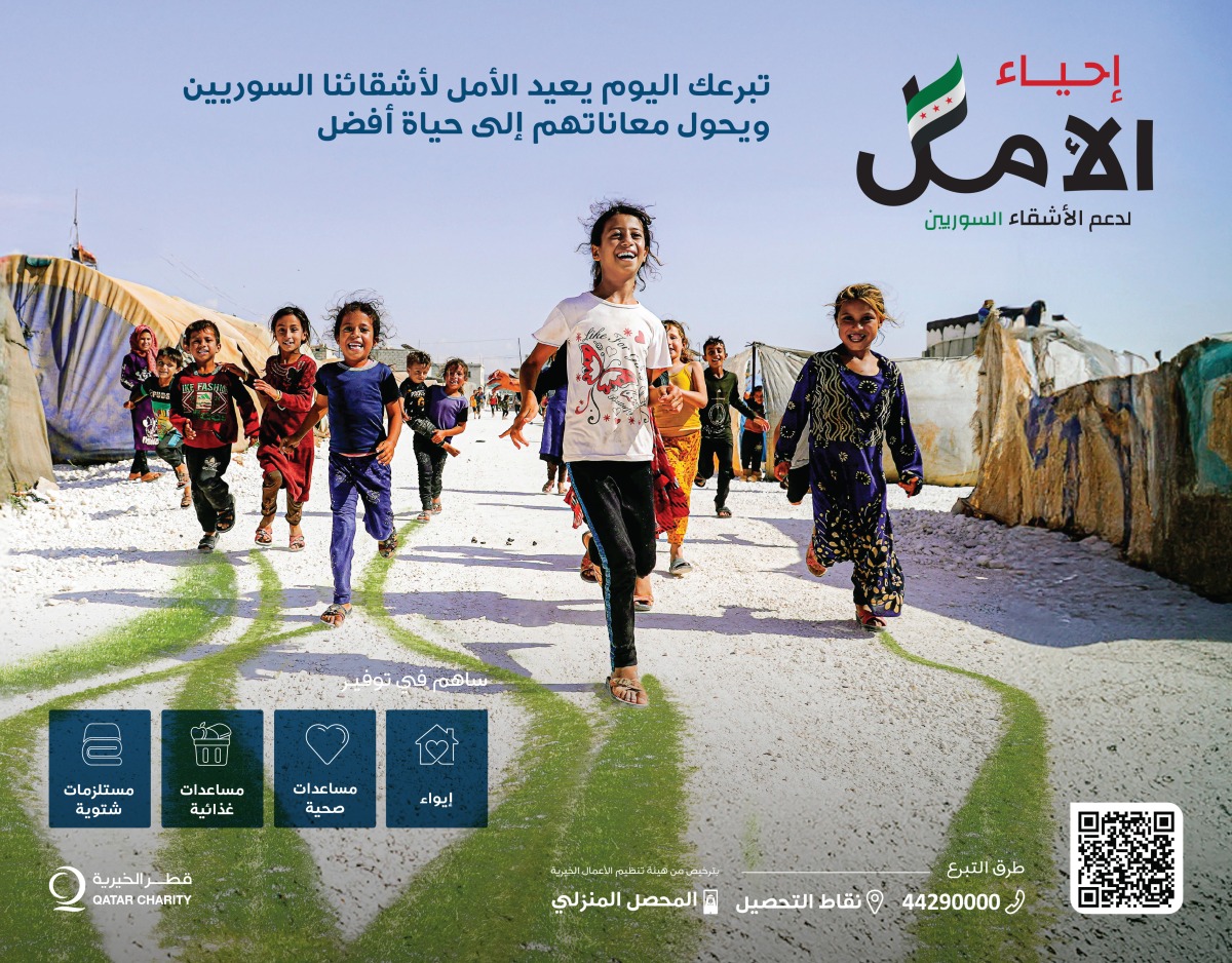 مواصلة لحملتها «إحياء الأمل» لدعم الأشقاء السوريين قامت قطر الخيرية وبدعم من أهل الخير في قطر، بتسيير قافلة ثانية من المساعدات الإنسانية، تتكون من 24 شاحنة محملة بالمواد الإغاثية الأساسية في مجالات الغذاء ومستلزمات الدفء ومواد النظافة الشخصية والمواد الطبية، بهدف تلبية الاحتياجات العاجلة للمتضررين من أبناء الشعب السوري، في ظل الأوضاع الإنسانية الصعبة التي يعيشونها.
