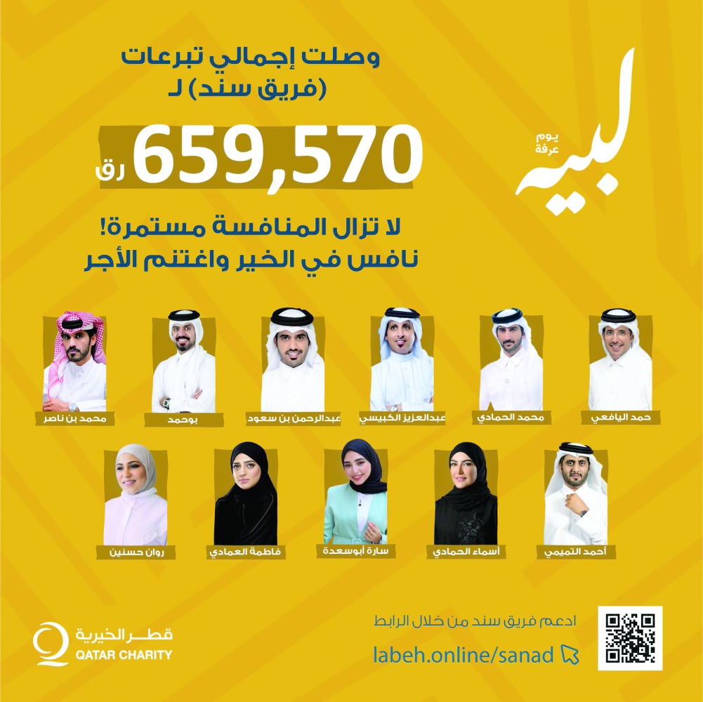 تتواصل منافسات فريقي مبادرة «لبيه»، التي أطلقتها قطر الخيرية على منصات التواصل الاجتماعي في 5 من ذي الحجة وتستمر حتى يوم عرفة، من أجل الوصول إلى المبلغ المستهدف لدعم مشاريع المياه والإصحاح في 3 دول إفريقية تعاني من الجفاف، بقيمة تقدر بـ 20 مليون ريال، وينتظر أن يستفيد منها حوالي 160,000 شخص. وتدعو قطر الخيرية الأفراد والشركات التجارية والمطاعم والفنادق وغيرها من الجهات إلى مؤازرة فريقي «عون» و»سند» والتنافس في هذه الأيام المباركة والمسارعة في الخيرات وخصوصا يوم عرفة للتبرع ودعم مبادرة «لبيه» يوم عرفة من أجل توفير المياه النقية الصالحة للشرب في المناطق التي تعاني من الجفاف في الدول الإفريقية المستهدفة (جيبوتي، غانا، الصومال) والمساهمة في إعادة الحياة لتلك المناطق الأقل حظا وحمايتها.