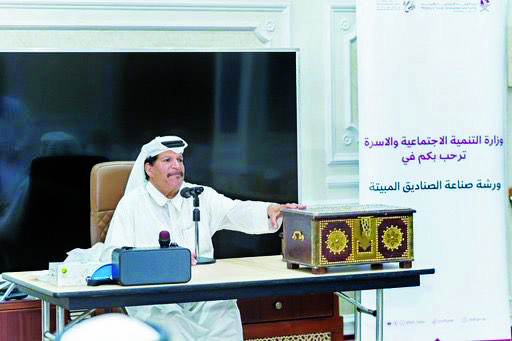 تأتي هذه الورشة في إطار خطة الوزارة المعتمدة بشأن التمكين والتوعية بإمكانية كبار القدر على الإنتاج، وتهدف إلى إبراز دورهم وتعزيز قدراتهم على العطاء، وتشجيعهم على التواصل والاندماج من خلال إشراكهم في الأنشطة والفعاليات الاجتماعية. قدم الورشة الحرفي عبد الله الحداد حيث استعرض خلال الورشة أسس صناعة الصناديق المبيتة مبينًا أنواع الخشب المستخدم في صناعتها، وأنواع النقوش المميزة والجميلة المحفورة عليها والمصنوعة من المعدن الأصفر، وإطلاع كبار القدر عن كثب على مراحل صناعة الصندوق المبيت والتي مارسها أهل قطر قديمًا.