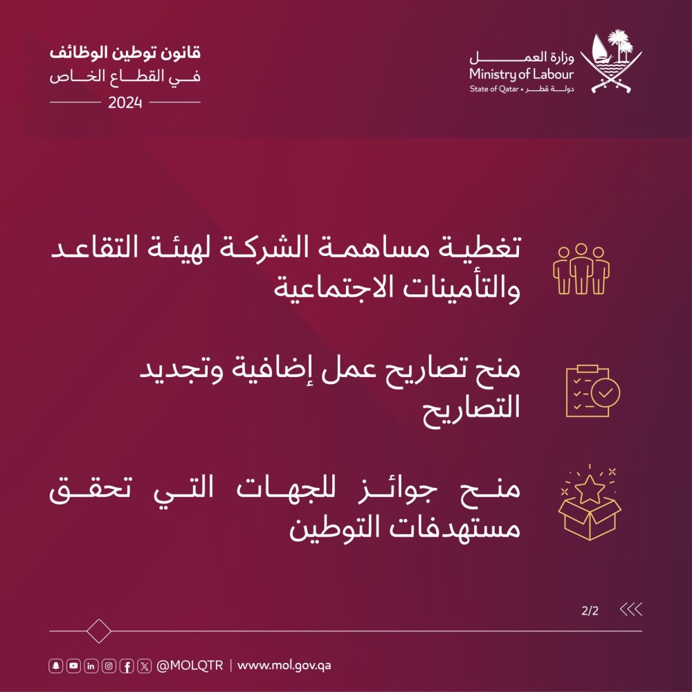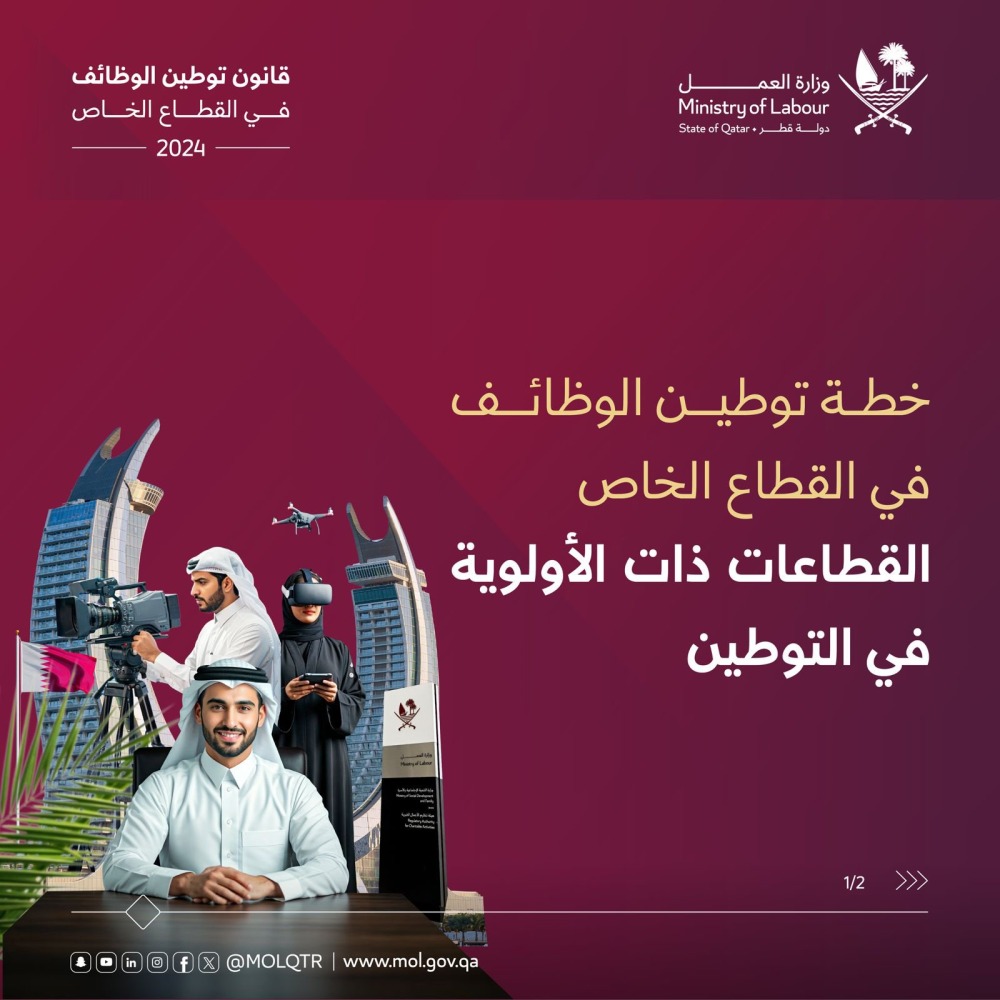 تستهدف خطة توطين الوظائف في القطاع الخاص 8 قطاعات استراتيجية للوصول إلى المستهدفات الوطنية، مع حوافز للجهات المشاركة.