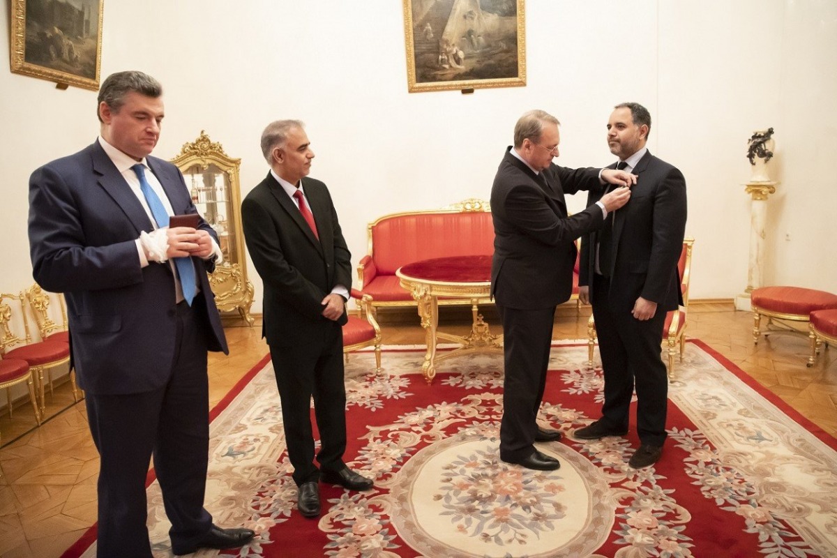 وخلال الحفل قلّد سعادة السيد بوغدانوف، سعادة السفير ميدالية تقدير على "التعاون مع وزارة الخارجية الروسية"، كما قلد سعادة السيد سلوتسكي، سعادة السفير الميدالية الذهبية "لصنع (حفظ) السلام والعمل الخيري".