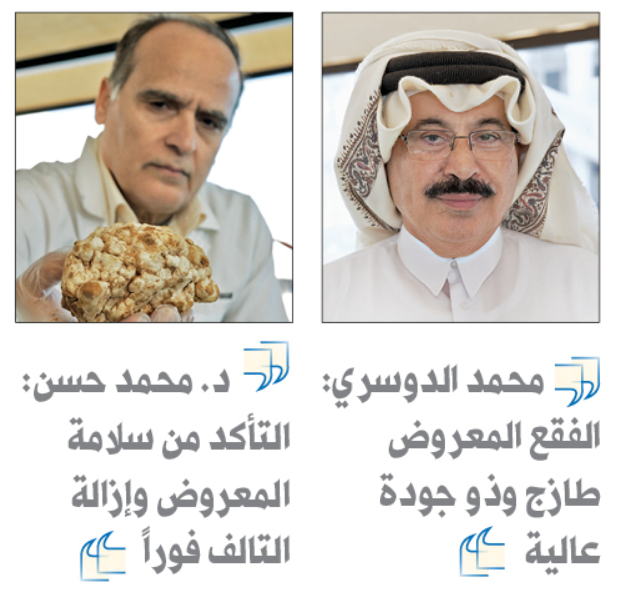 قال الدكتور محمد حسن – مفتش أغذية ببلدية الدوحة، إن وزارة البلدية تحرص على التأكد من سلامة الفقع المعروض والقيام في حال وجود أي كميات بها عطب بإتلافها فورًا، مشيرا إلى أننا مازلنا في بداية موسم إنتاج الفقع والمميز فيه أن الثمرة تكون بحالة جيدة، وقد تكون هذه أحد أسباب ارتفاع أسعار الفقع في بداية موسم إنتاجه.