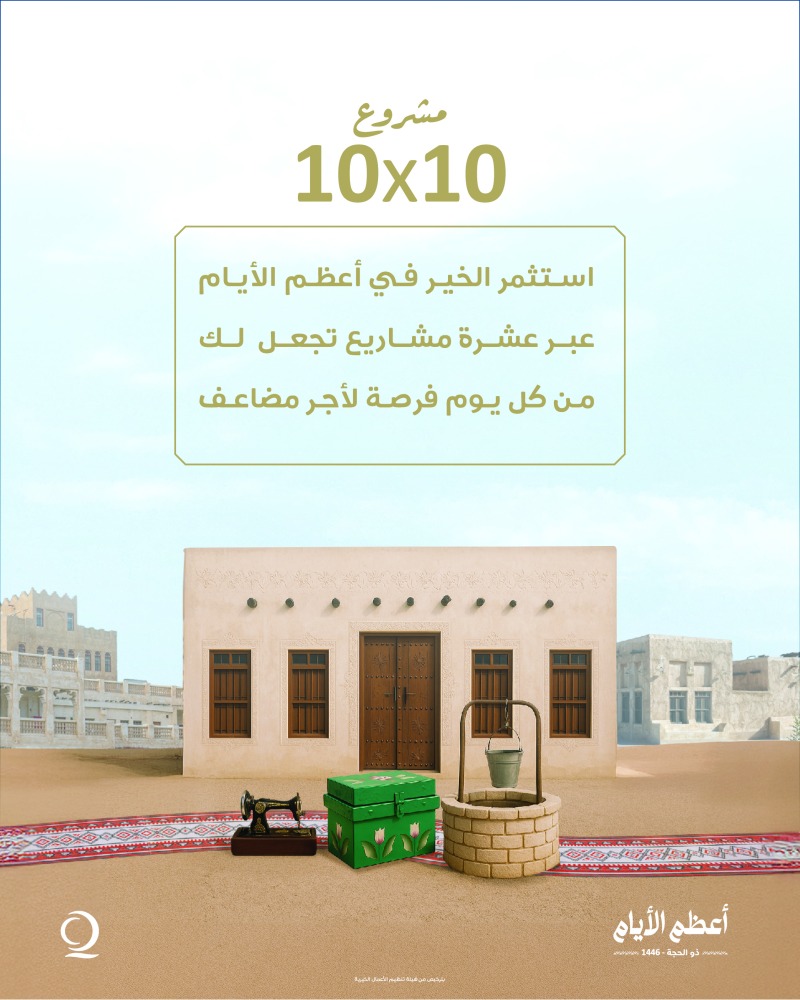 تزامنا مع حلول شهر ذي الحجة، التي تُعد عشرة أيامه الأولى أفضل أيام السنة للقيام بالأعمال الصالحة، تفتح قطر الخيرية أبواب الخير أمام أهل العطاء من خلال مبادرات نوعية مثل «صدقة العشر» ومبادرة «10×10».