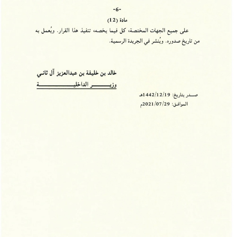 وقضى القرار في مادته الأخيرة، بتنفيذه والعمل به من تاريخ صدوره، وأن ينشر في الجريدة الرسمية.