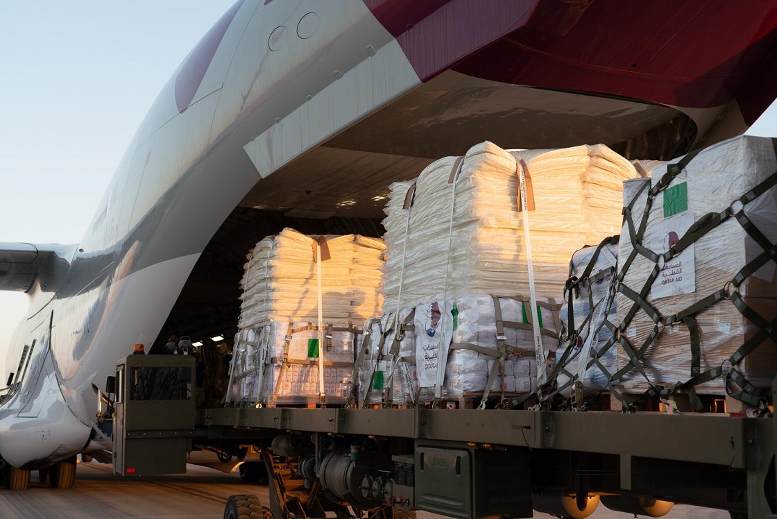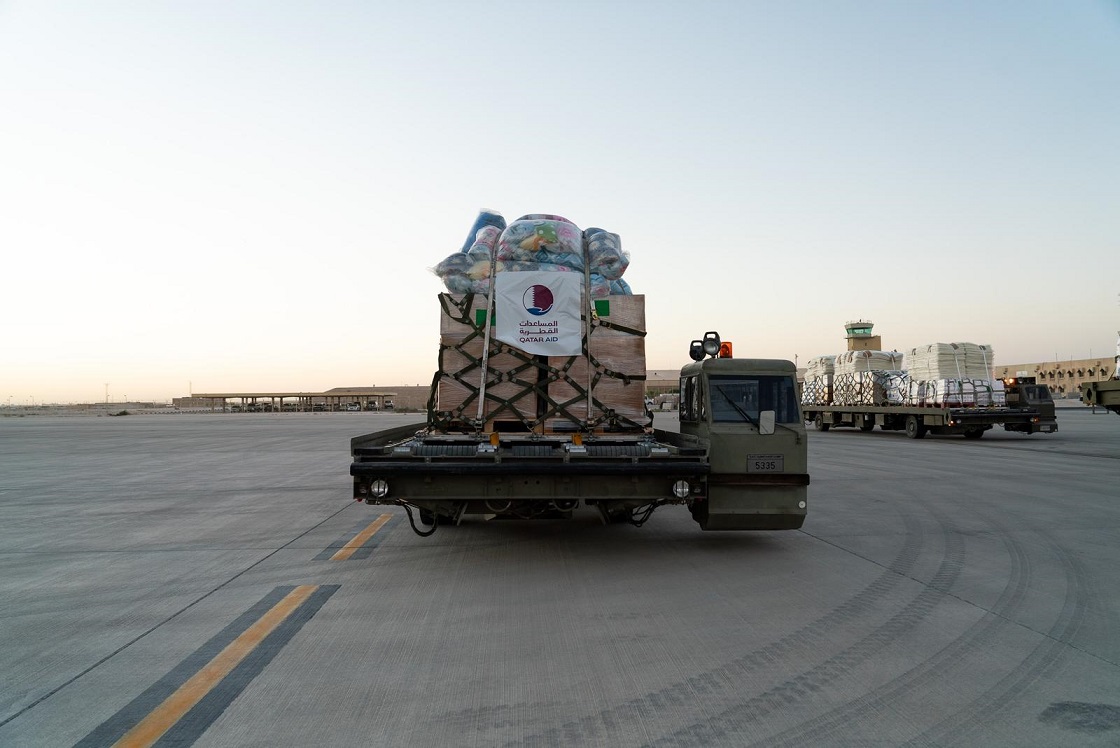 وصلت إلى مدينة /العريش/ في جمهورية مصر العربية الشقيقة، اليوم، ثلاث طائرات تابعة للقوات المسلحة القطرية، تحمل 112 طنا من المساعدات، تتضمن مواد غذائية أساسية ومستلزمات إيواء، مقدمة من صندوق قطر للتنمية، وقطر الخيرية، تمهيدا لنقلها إلى غزة، ليبلغ بذلك مجموع الطائرات 33 طائرة، بإجمالي 1130 طنا من المساعدات.